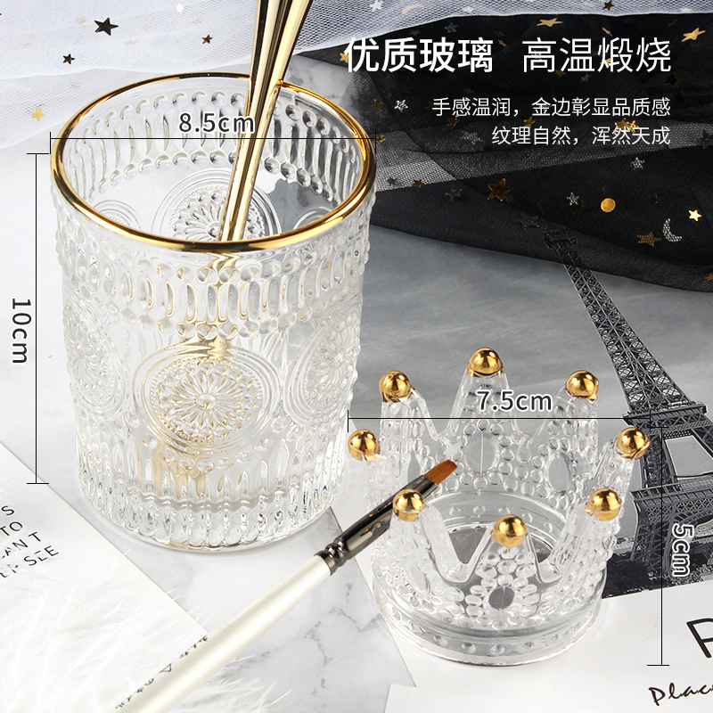 Chusha Japanese nail art pen holder embossed pen holder Net red gold border glass crown brush holder desktop storage box tool tool