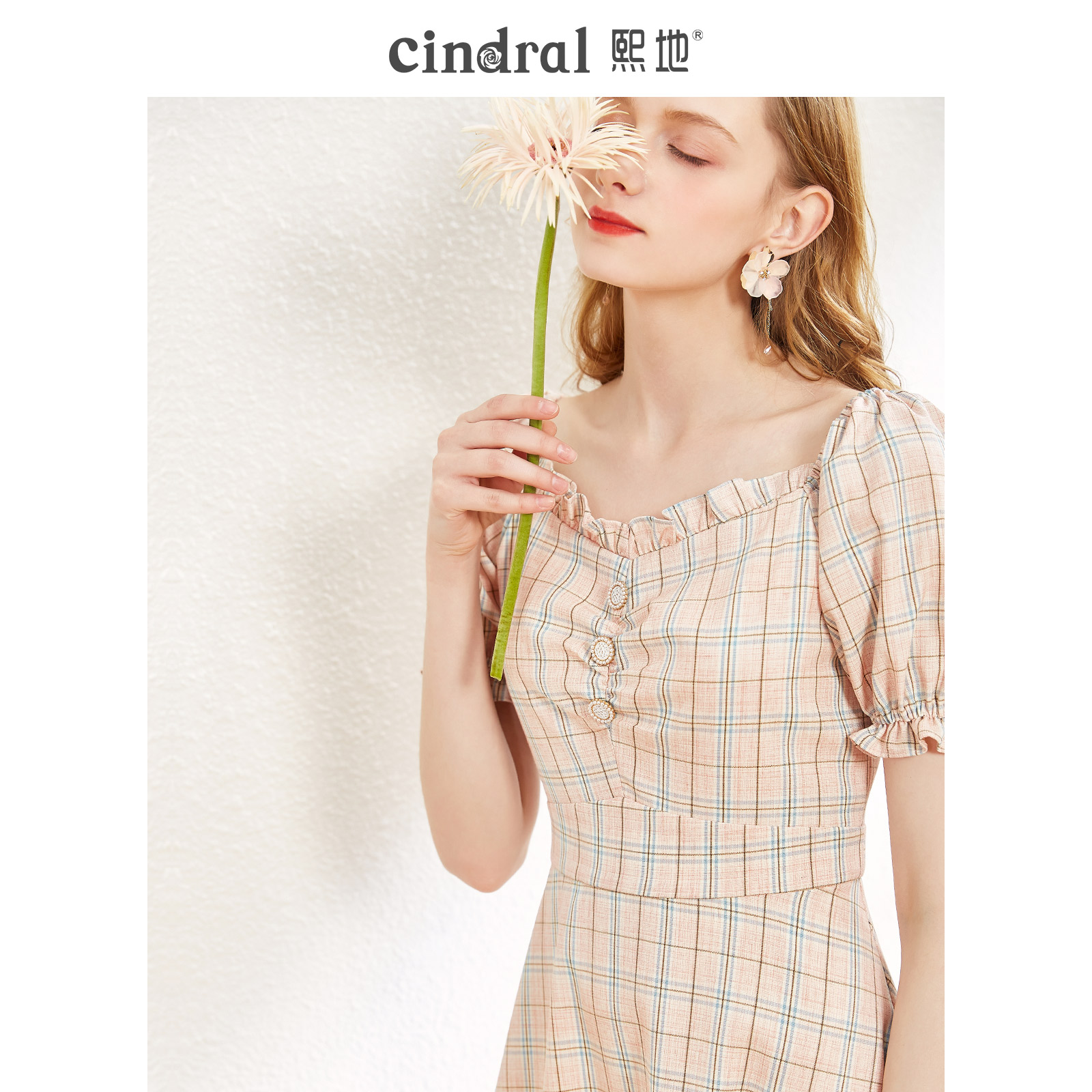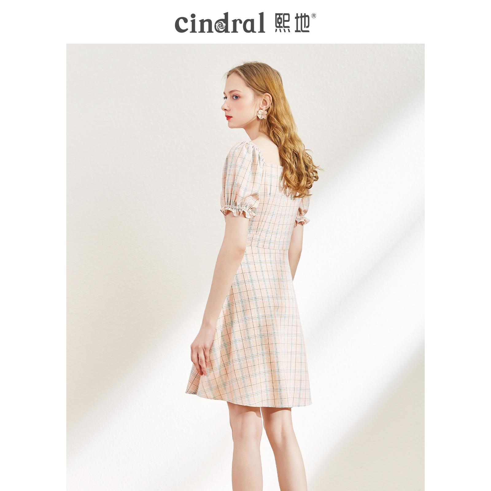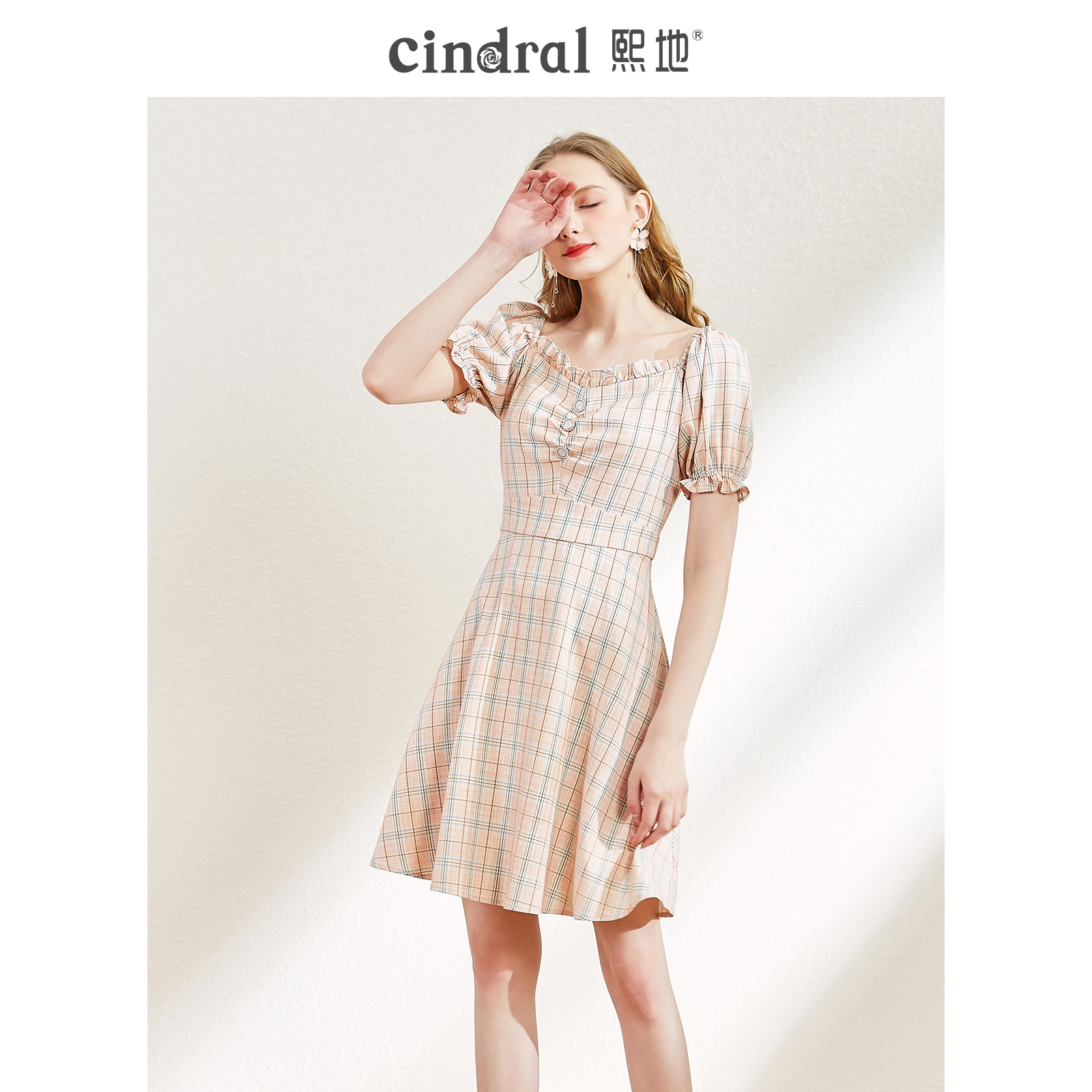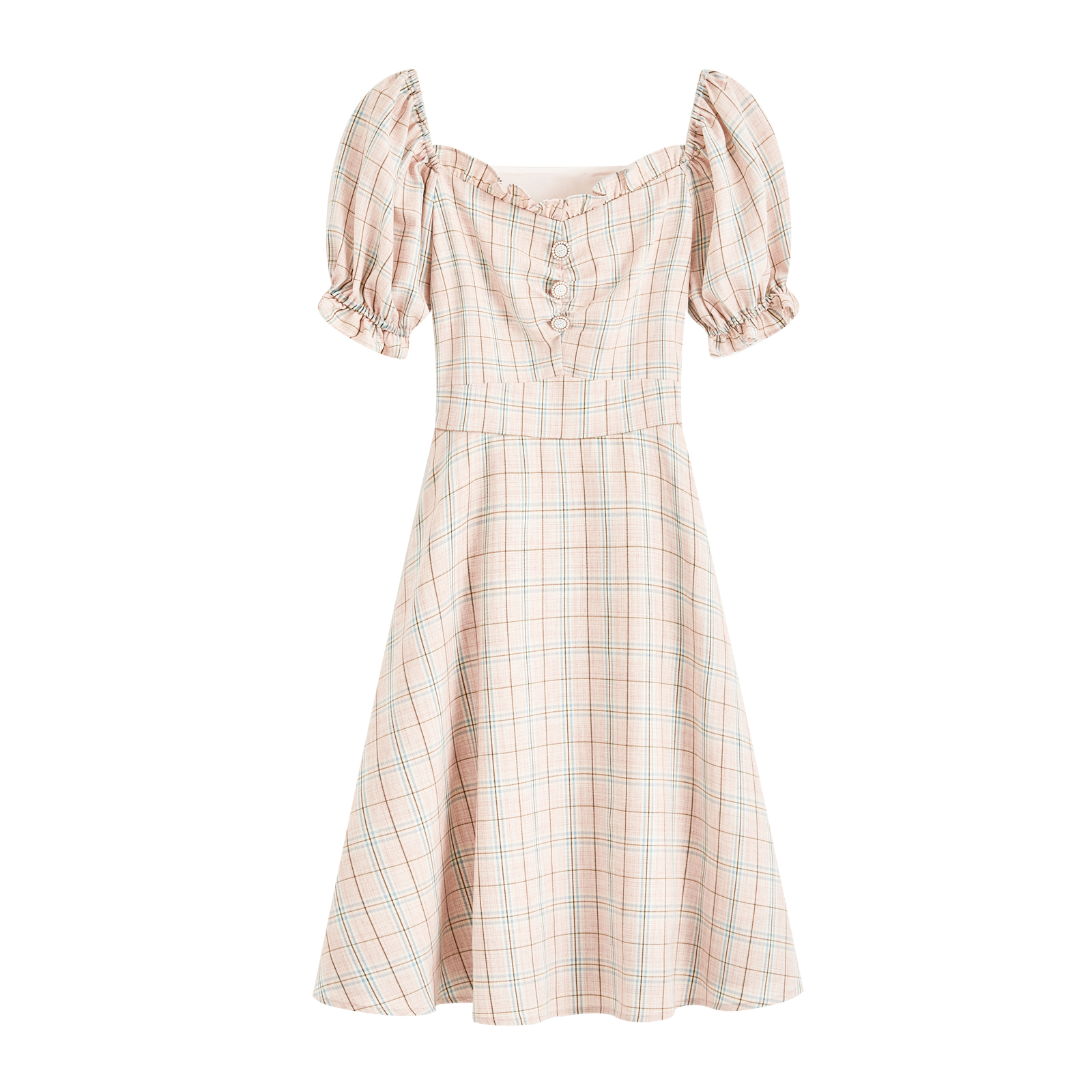 Xi's 2022 summer new dress children pink plaid bubble sleeves in the shape of a sweet and beautiful body