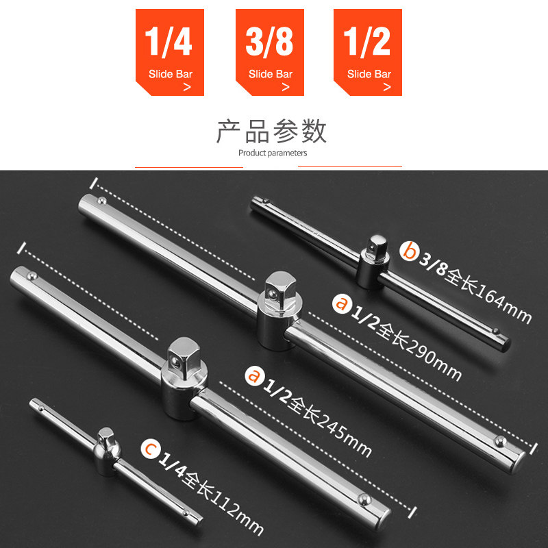 Large flying medium flying 1 4 inches sleeve wrench sleeve slide-lever sliding connecting rod lengthened forcing lever sliding head sliding rod square handle accessory accessory