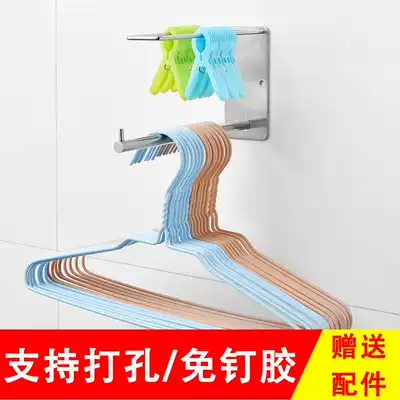Hanger storage rack balcony non-perforated adhesive hook wall-mounted stainless steel multi-layer drying hanger storage artifact