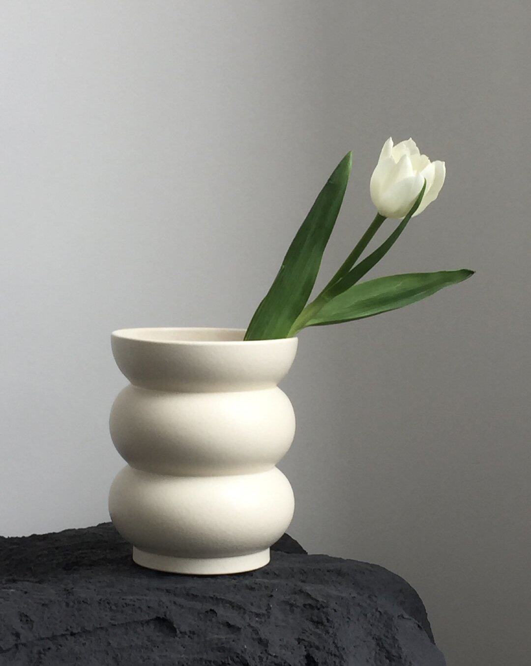 TAVN openobject "Ryū" matte glazed black white sand large-bore ceramic vase