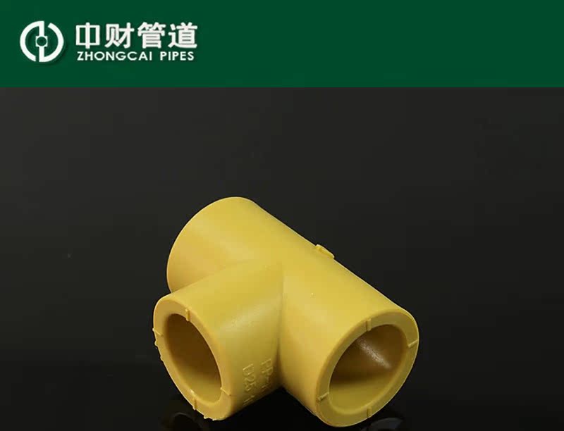 Zhongcai PPR pipe Yellow curry color equal diameter three-way positive three-way water pipe fittings 20 25 32