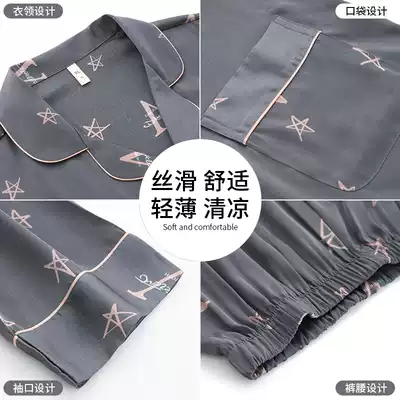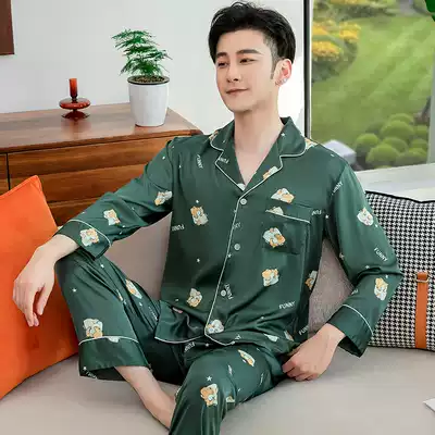 Shangzhe pajamas male Spring and Autumn long sleeve Thin Ice Silk middle-aged father shirt male loose simulation Silk Home suit set