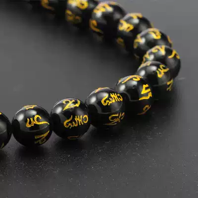 Black agate six-character mantra round beads gilded beads diy handmade beads beads jewelry accessories