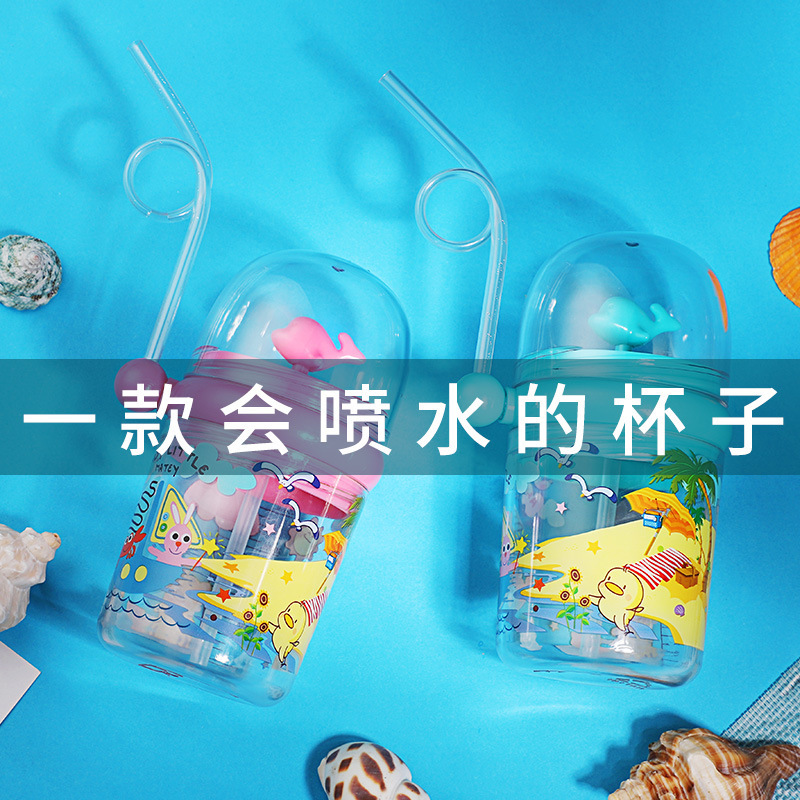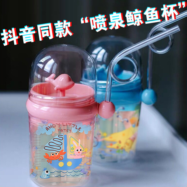 Douyin same basketball water cup will spray whale water cup dolphin children's straw cup girl heart cast blue water cup