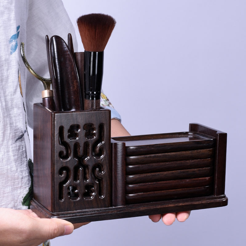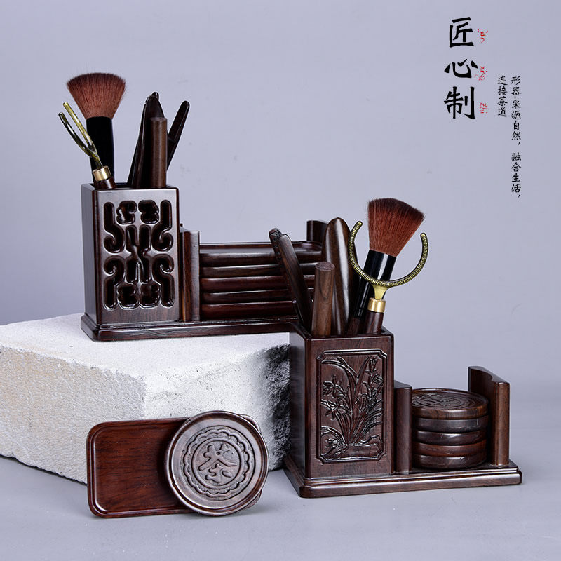 Twelve pieces of black sandal-hollow rectangular group of 12 pieces of black sandal-tea word quartet cube group of 12 pieces of black sandal-orchid round toy for centuries