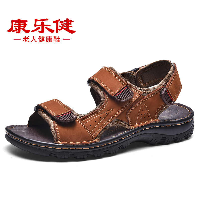 Summer sandas male middle - aged man daddy large 47 soft sole sports outdoor leisure old slippers wear real leather