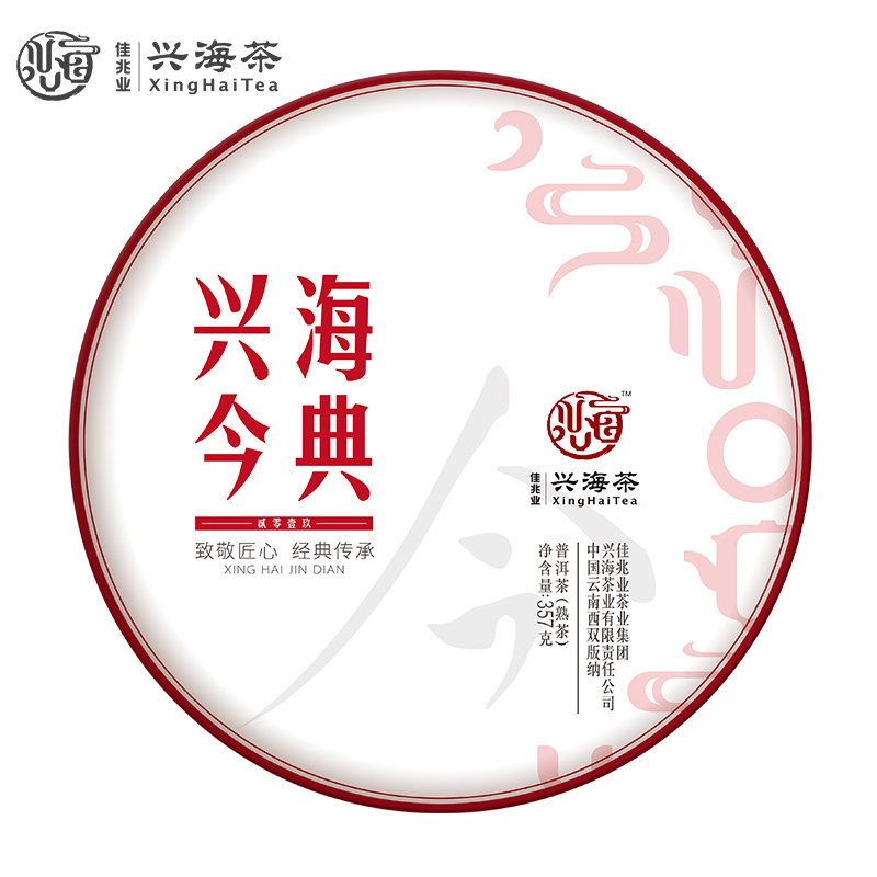 Jia Zhai's Xinghai tea plant Peupole 2019 years Xinghai this year's Yunnan Pu'er cooked tea cake cooked Pu'er tea cake 357g