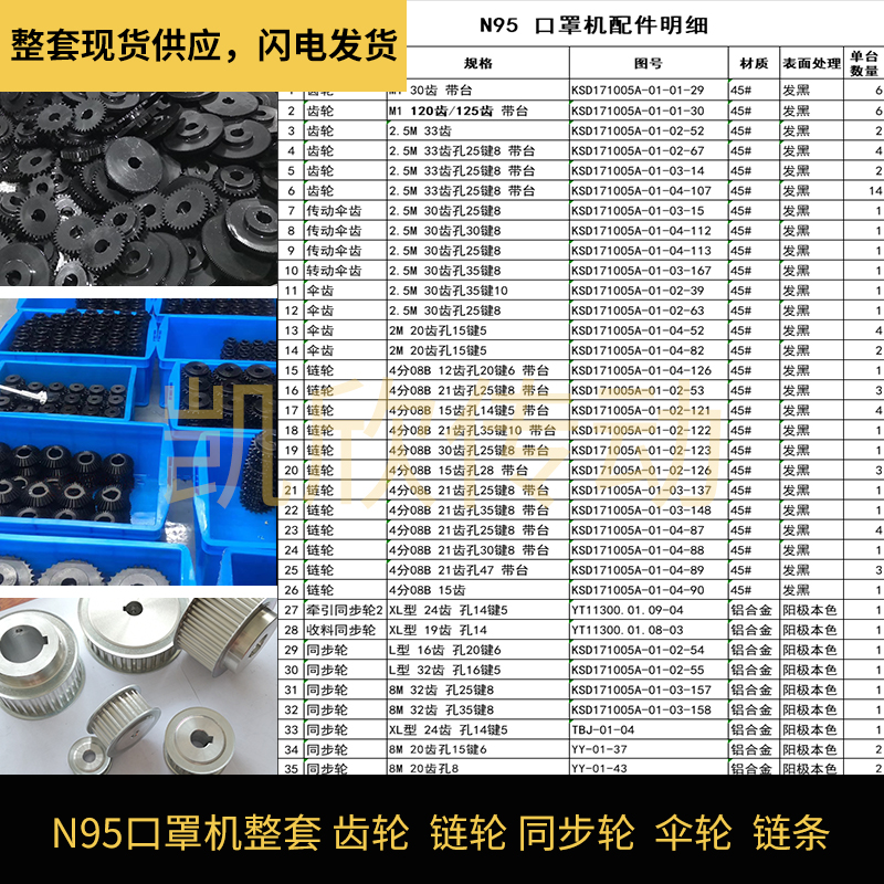 N95 mask machine gear sprockets chain synchronous wheel plane mask machine accessories complete set of KSD machining to make spot