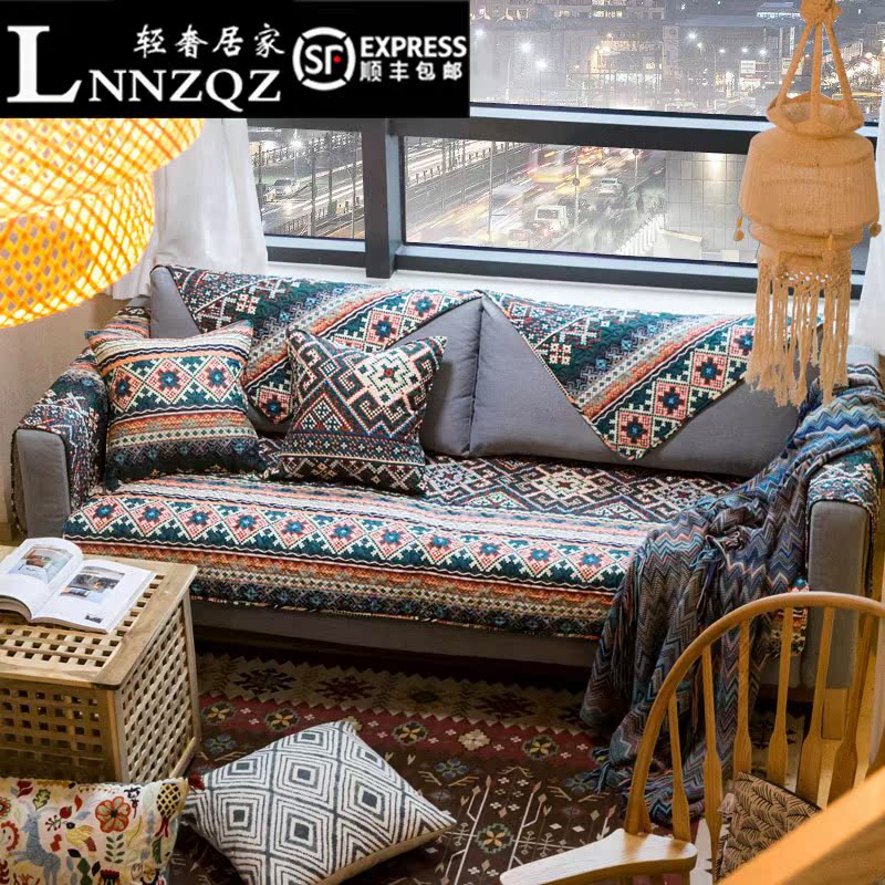 LNNZQZ sofa cushion four seasons universal cotton fabric sofa cover cloth high-grade Nordic simple summer non-slip customization