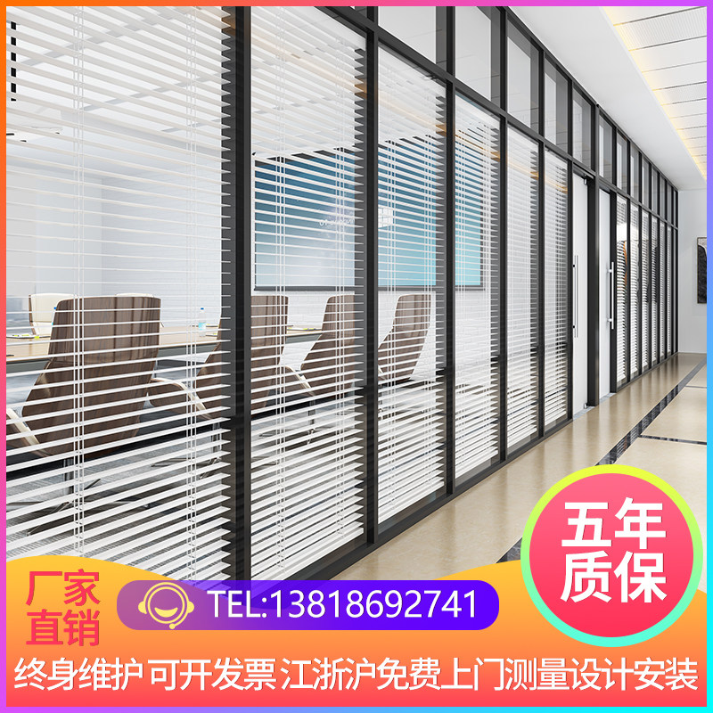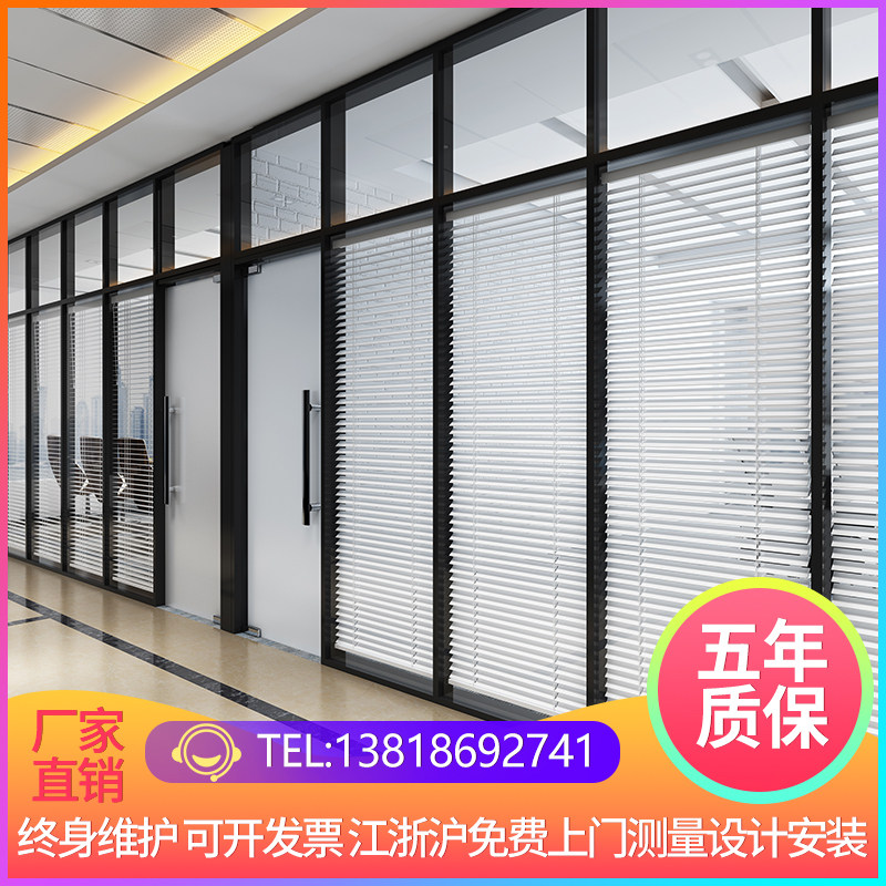 Office glass partition wall aluminum alloy tempered hollow shutter soundproof wall office building screen high partition room