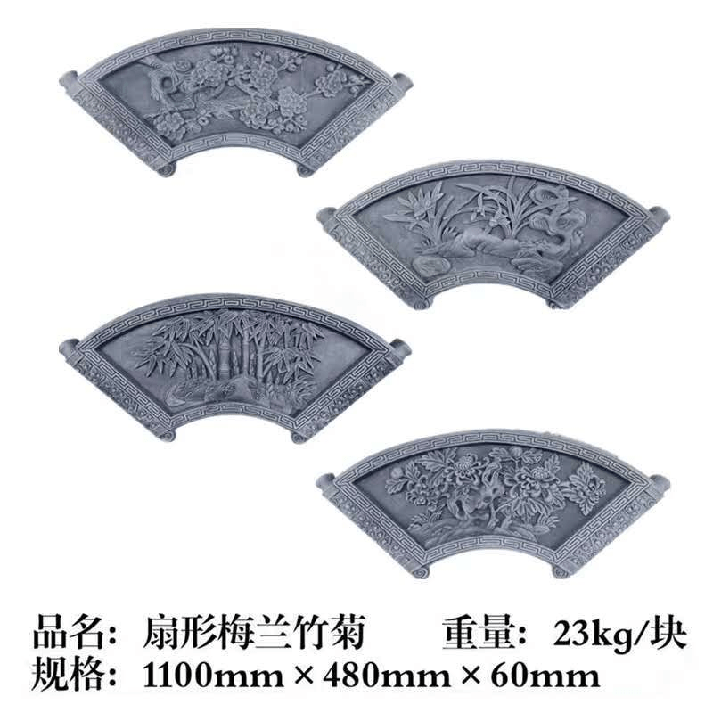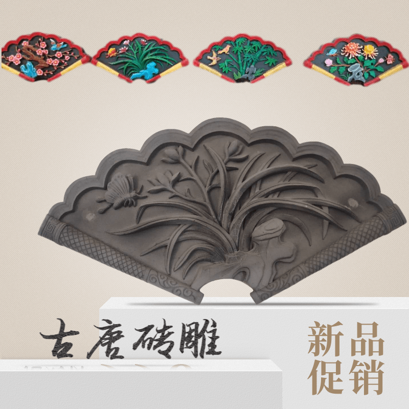 Sector Brick Carved Melan Bamboo Chrysanthemum Hollowed-out Window Ancient construction Chinese custom square round background wall Four-in-house relief