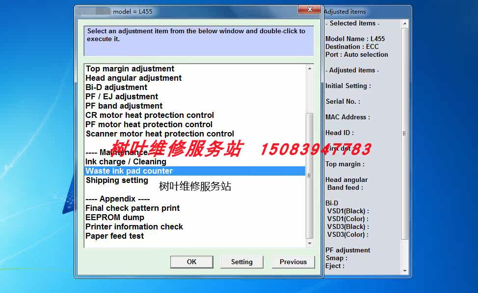 EPSON L455 waste ink counter full reset adjustment program fault code reading unlimited version