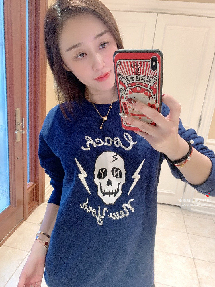 Spot dark blue letter skull sweater