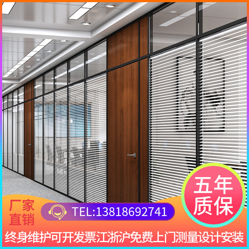 Jiangsu, Zhejiang and Shanghai office screen Tempered glass partition wall Office aluminum alloy high partition hollow with louvers