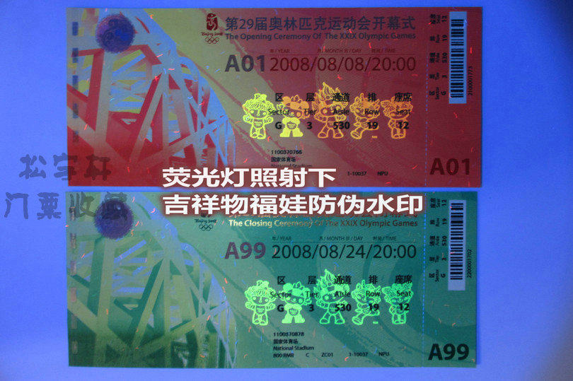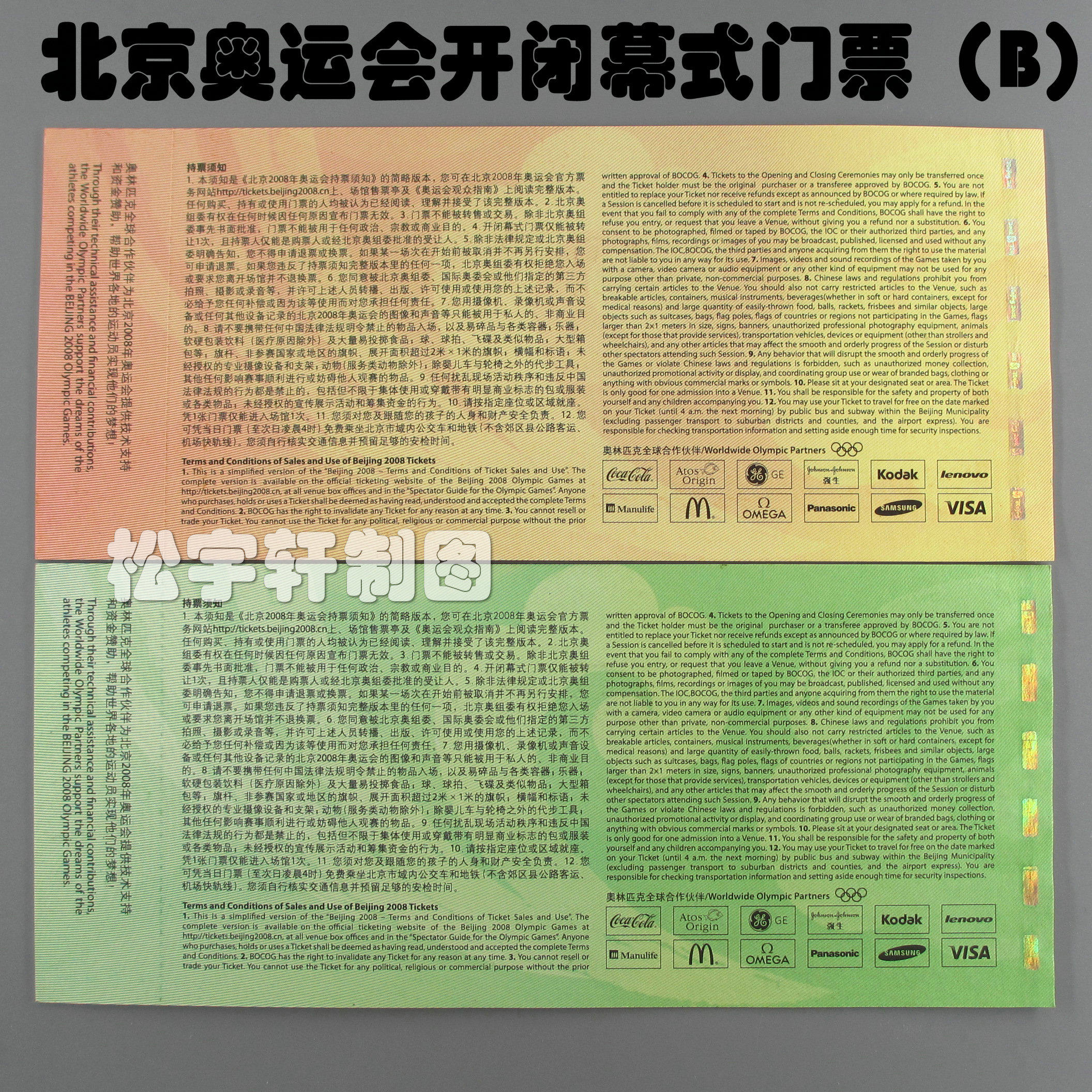 2 opening and closing tickets for the opening and closing ceremony of the 2008 Beijing Olympic Games Grade B has few surviving tickets