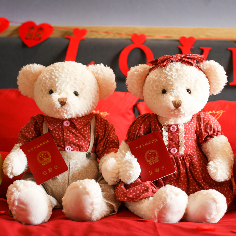 1 pair of plaid bed press dolls 1 pair of red press dolls 1 pair of beige rose bears 1 pair of tube top wedding dress bears gentleman bears pair Long dress wedding bears gentleman bears pair Red men's models