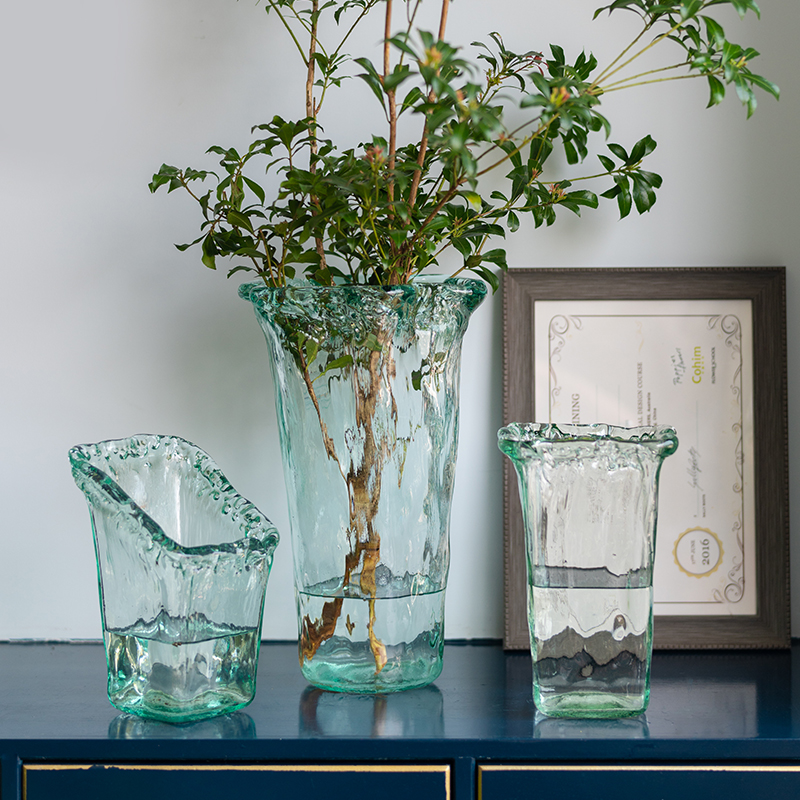 Nordic light luxury creative Spanish crystal glass vase ornaments Flowers hydroponic living room simple hydroponic flower arrangement