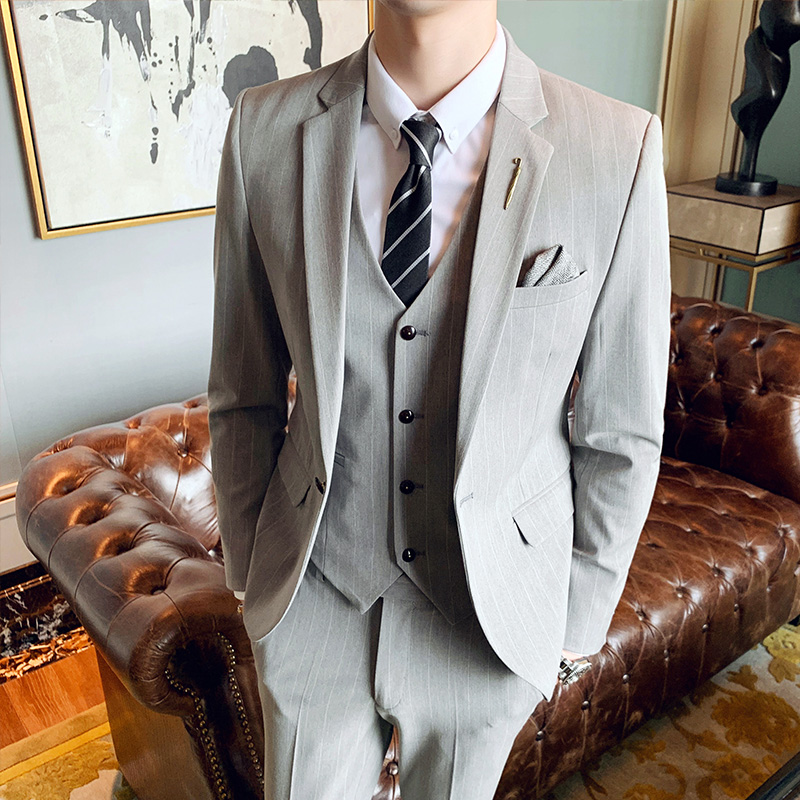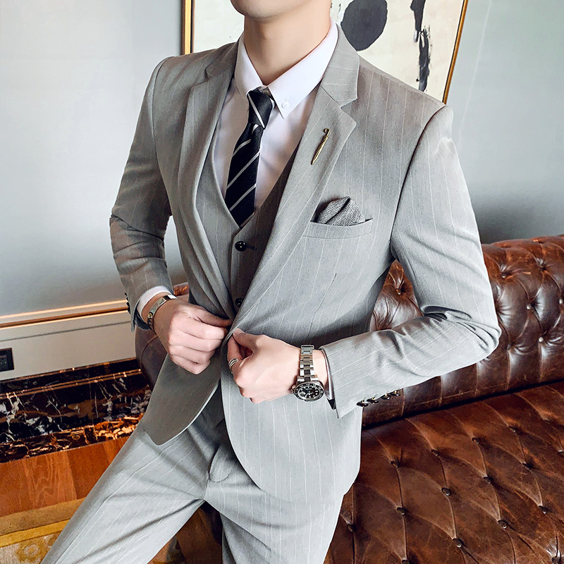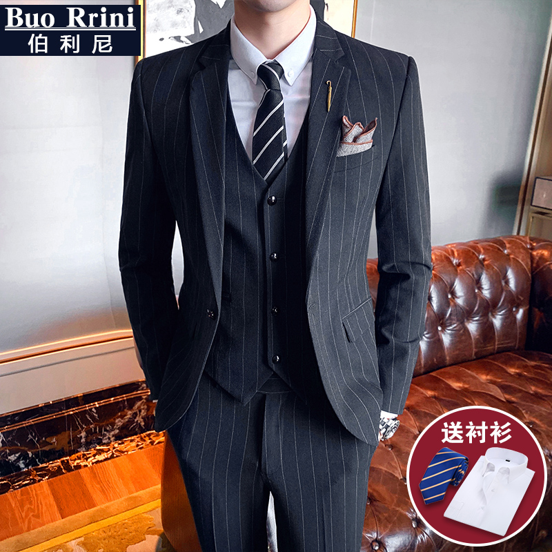 Leisure suit men's suit three-piece stripes business fix dress groom wedding dress Britnya ruff wedding