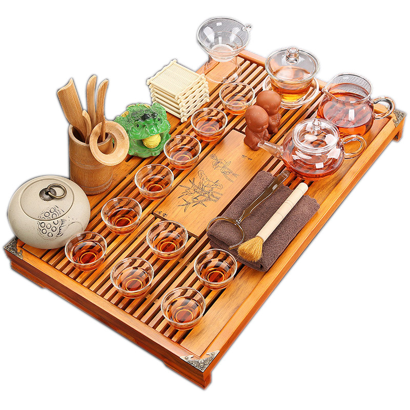 Purple sand ceramic tea set stainless steel chassis storage and drainage solid wood tea tray household drain tray tea table living room - Taobao