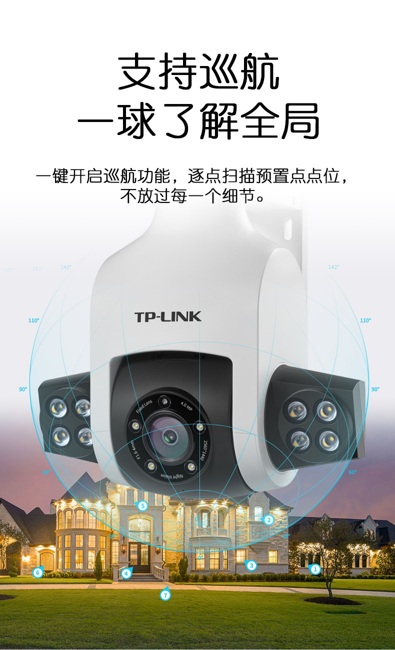 tplink 4 million automatic cruise camera outdoor zoom 360 degree wifi dome machine day and night full color monitor