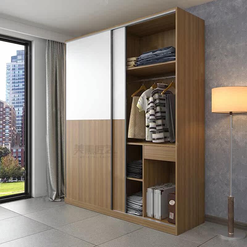 Modern simple sliding door wardrobe 1 5 meters 1 8 meters Nordic small apartment ultra-thin sliding door cabinet custom width 50cm