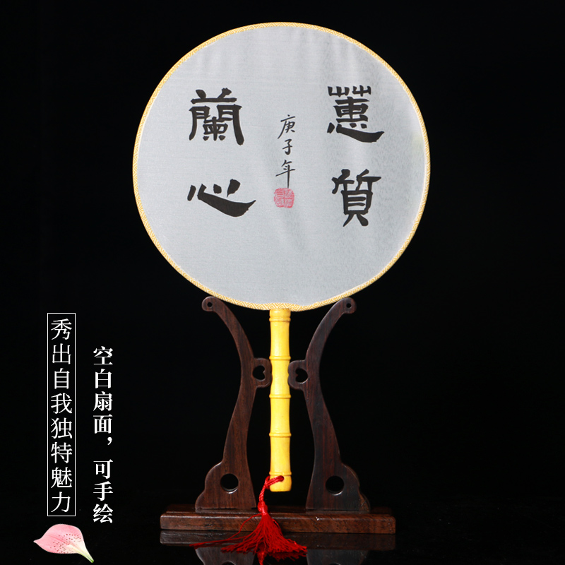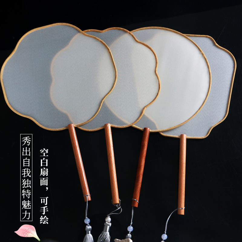 Yellow bamboo fan handle white silk cloth round fan handle Nanzhu hollow fan handle Beige white Silk Banana-shaped fan handle Nanzhu hollow fan handle Beige white Silk Round fan handle Nanzhu hollow fan handle Beige white Silk Eight-petal begonia-shaped fan handle