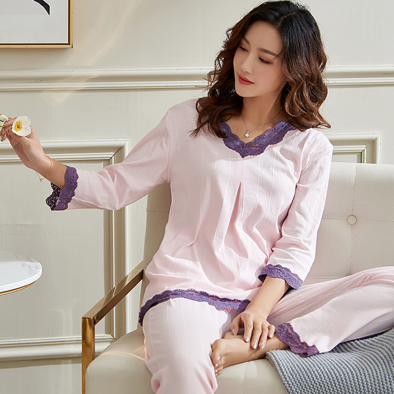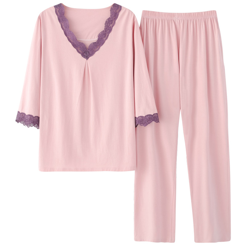 Modal pajamas ladies summer mid-sleeve trousers middle-aged and elderly mother-in-law pullover thin homewear suit