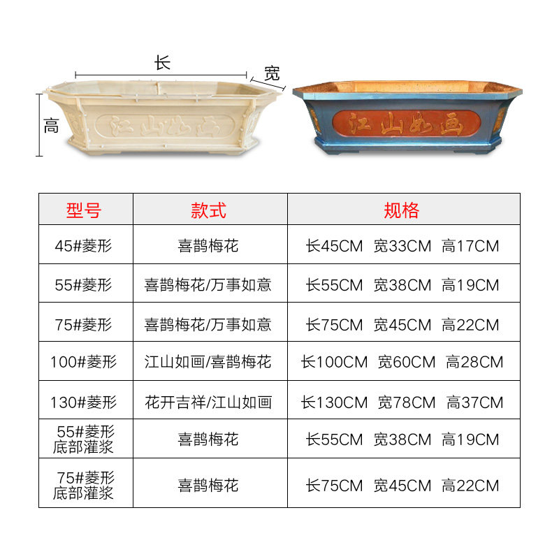 Diamond flower pot mold basin cement mold homemade thickened bonsai basin plastic new concrete abrasive king size