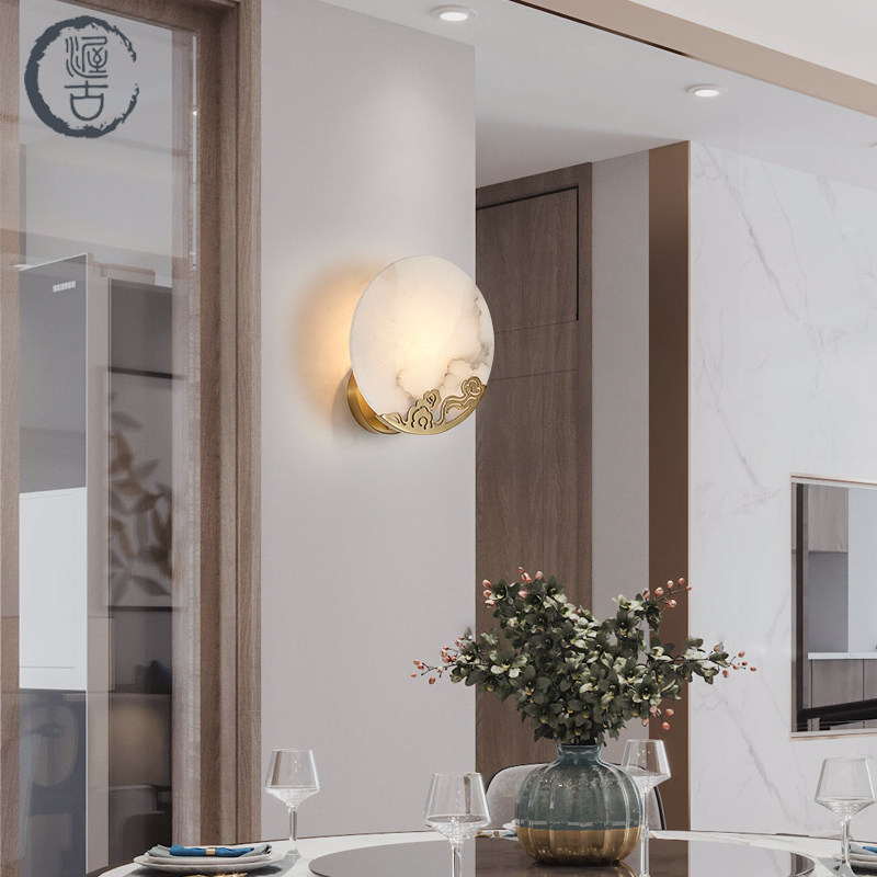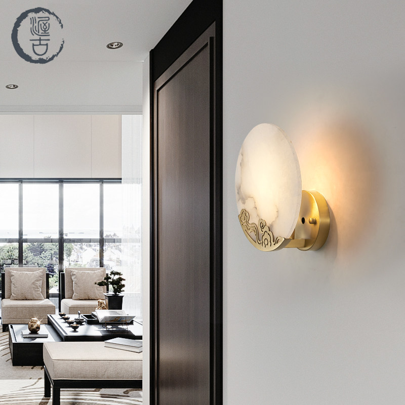 (Rui Ai) New Chinese style all-copper wall lamp living room background wall bedroom bedside lamp natural marble Chinese style lamps