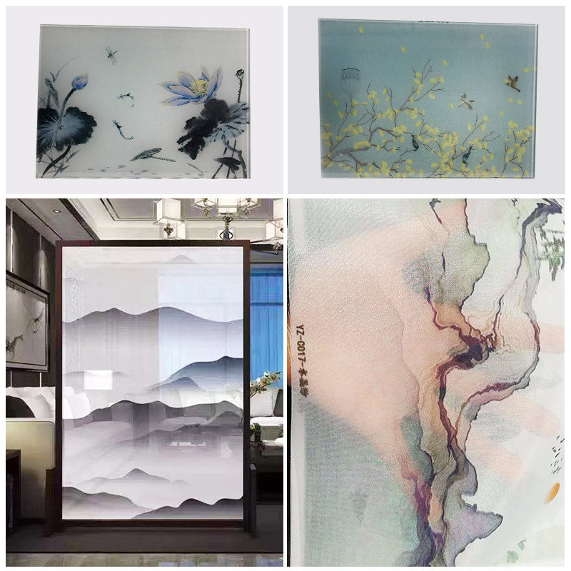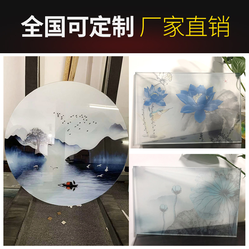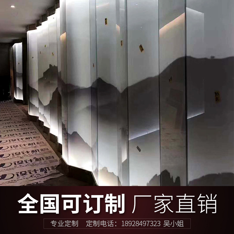 Chinese style landscape painting art glass screen partition wire glass yarn glass landscape painting decorative screen