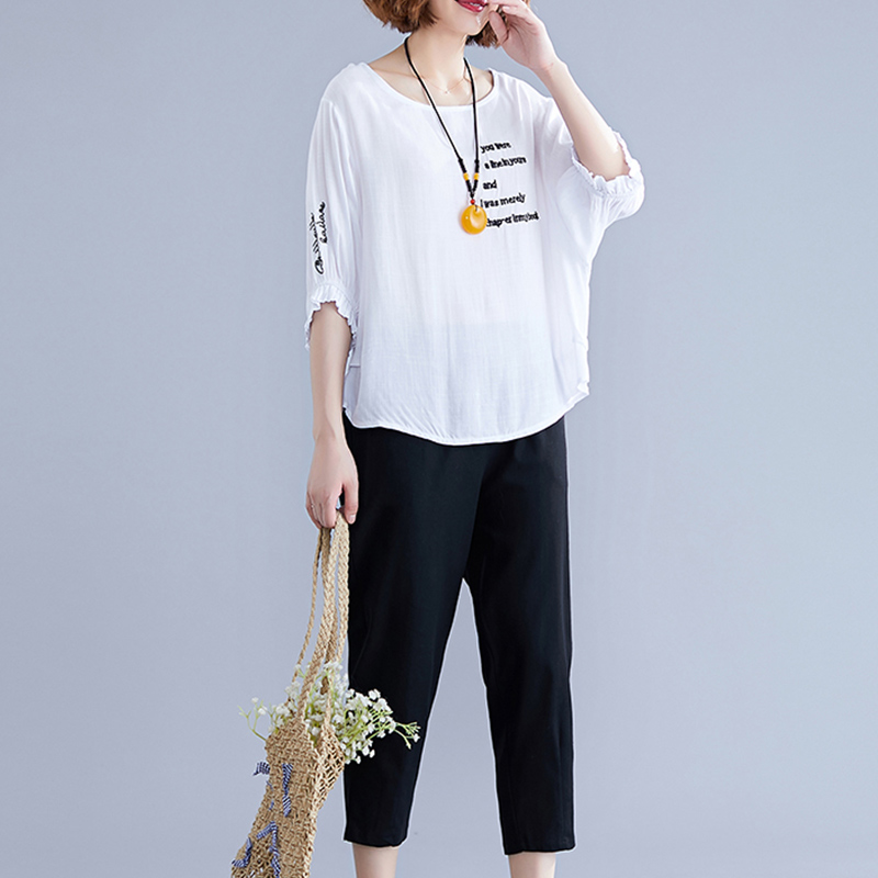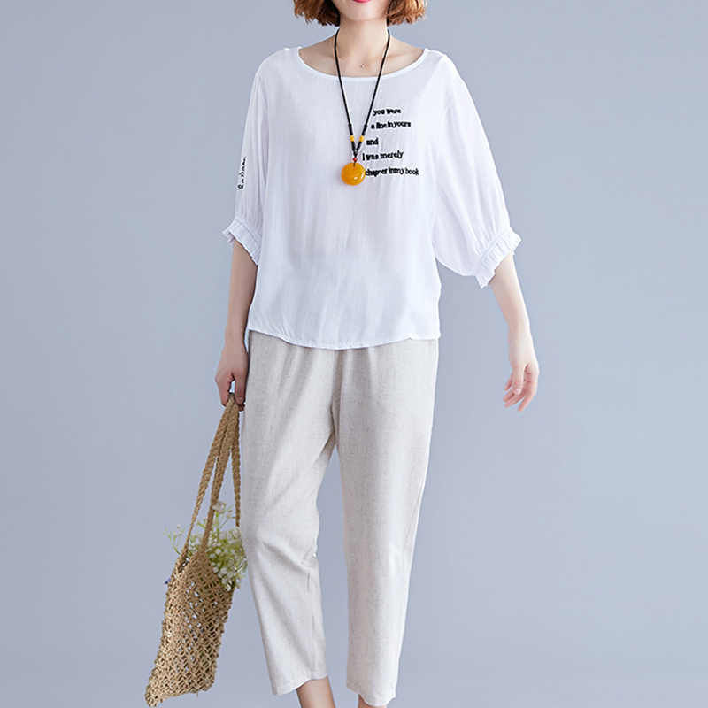 Large size 2022 summer new fat mm cotton and linen suits women's thin harem pants casual linen two-piece suits age-reducing fashion