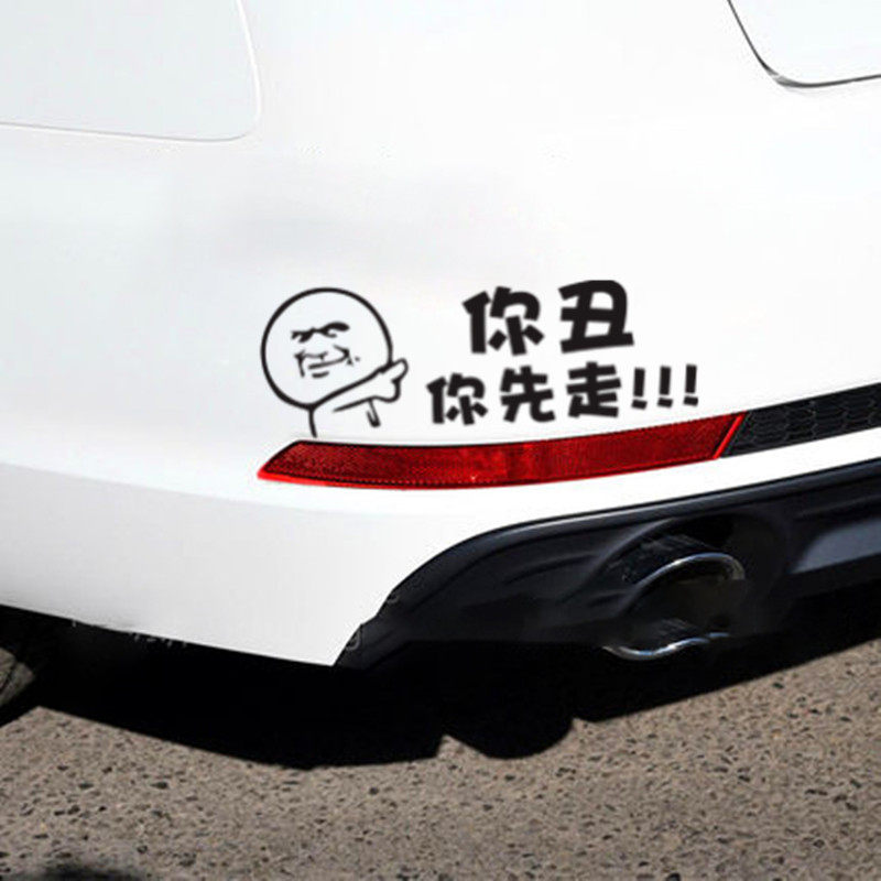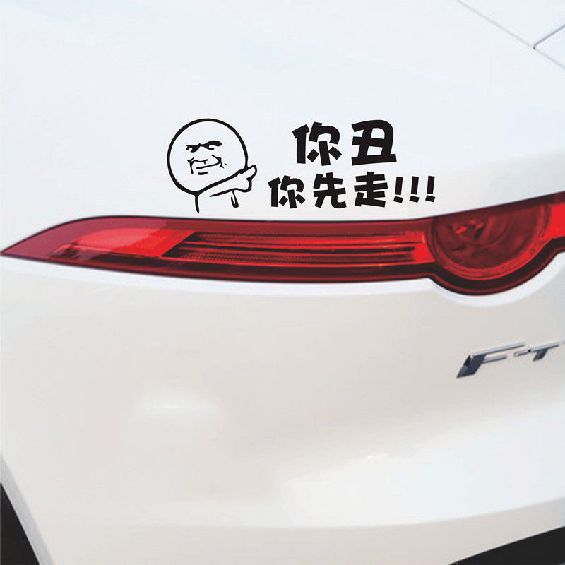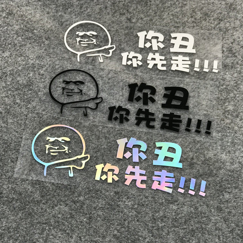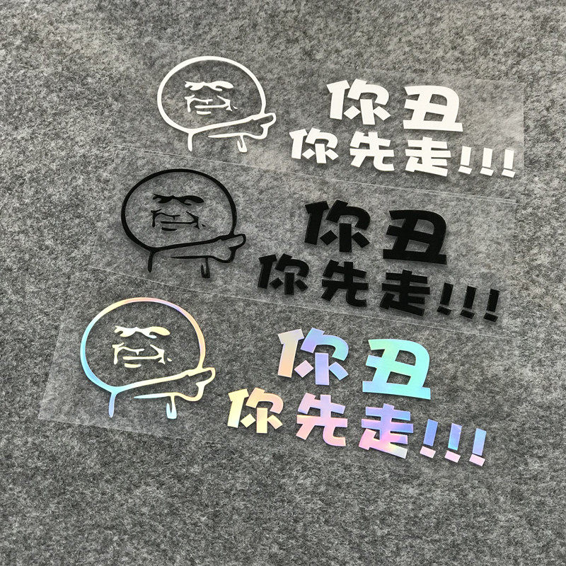 You ugly you go first car stickers Colorful net red creative personality funny text reflective stickers rear decoration stickers