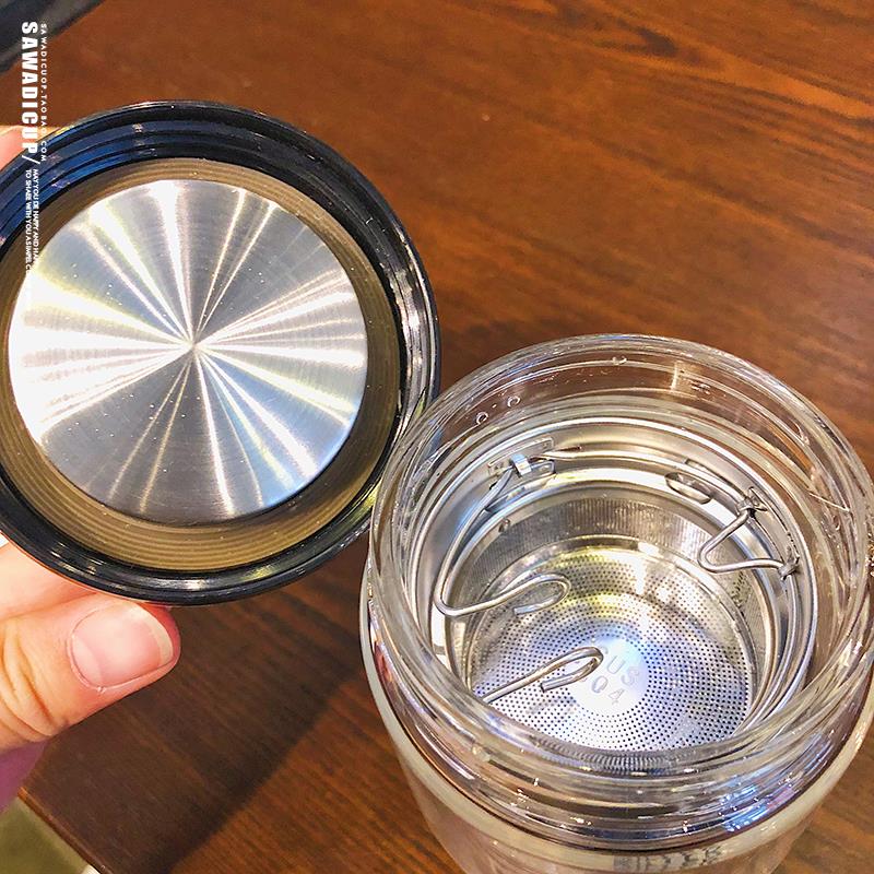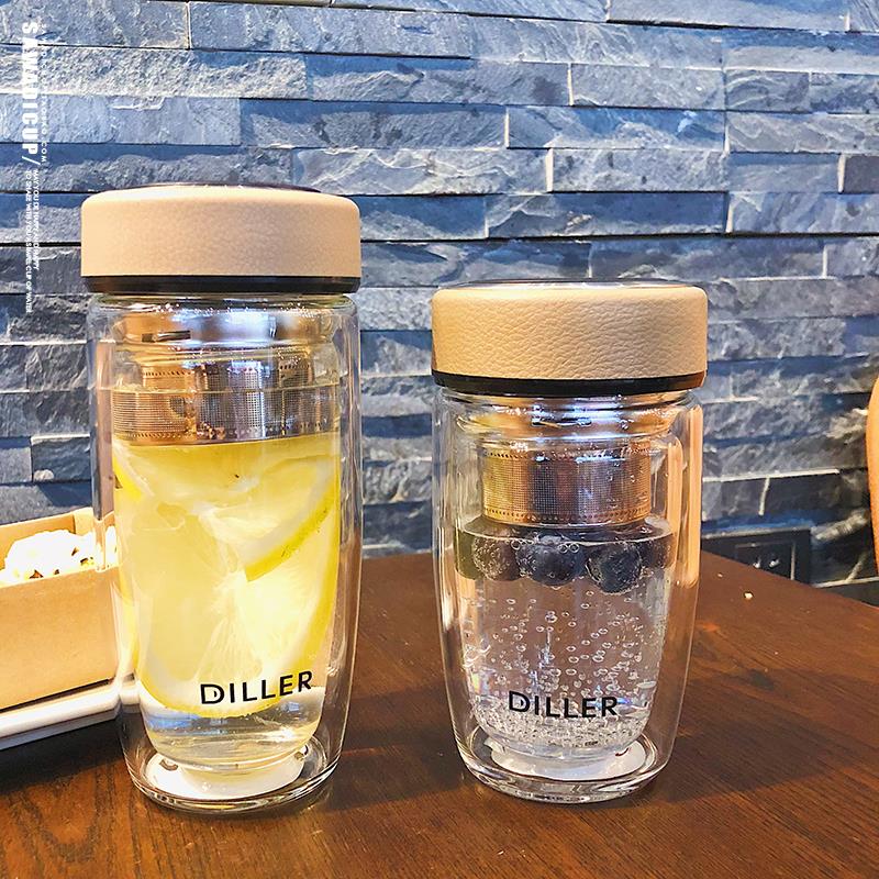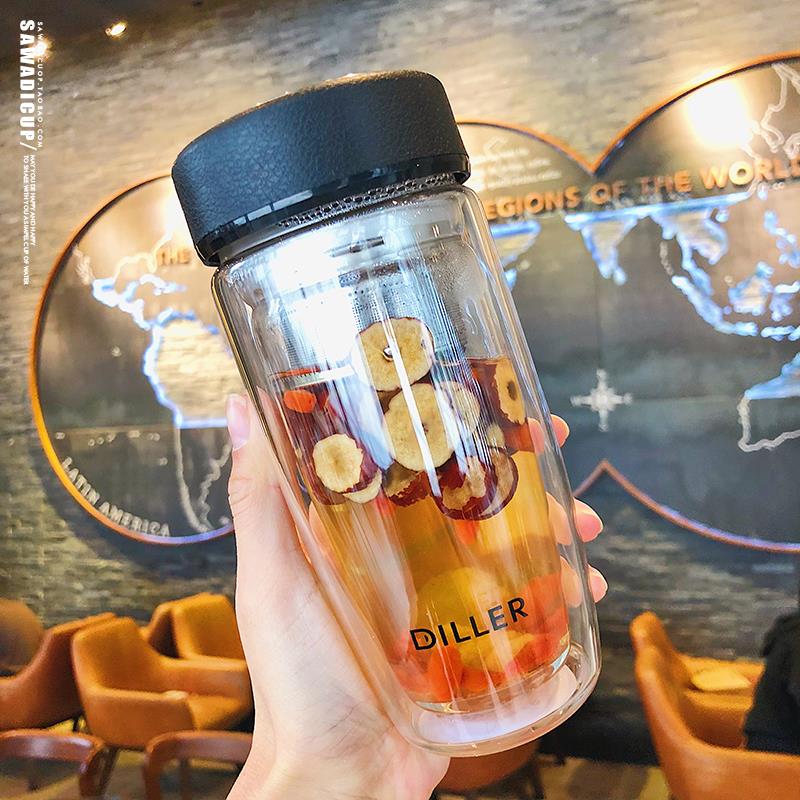 Han-style double glass cup male and female minimalist double water cup thermal insulation portable home office transparent filter tea cup