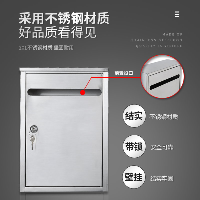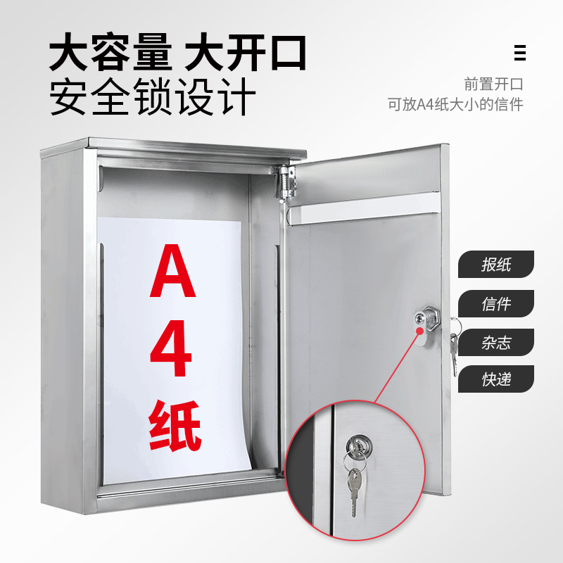 Stainless steel rain-proof outdoor hanging wall Post letter box Opinion box Lift Newspaper Box Magazine Express Containing box