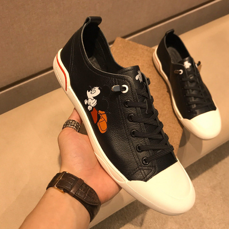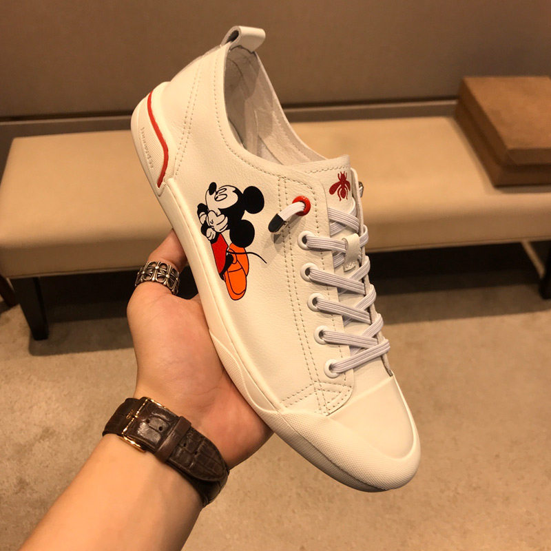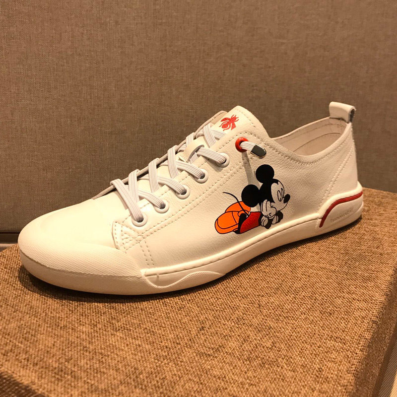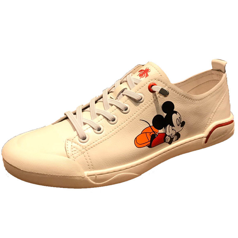 European station men's shoes 2023 spring and summer new leather breathable Mickey printed white shoes men's slip-on shoes small size