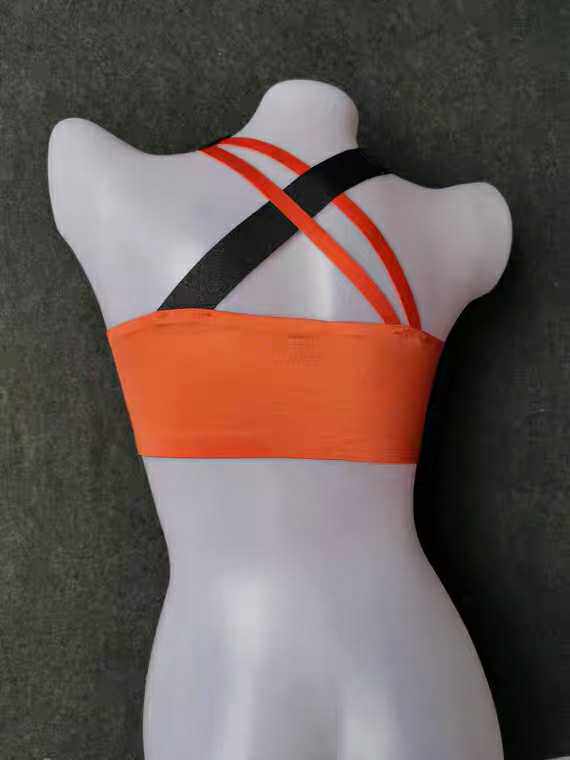 Yoga sports underwear women's comfortable no steel ring bra matching color contrast color thin gather vest shockproof running wrapped chest