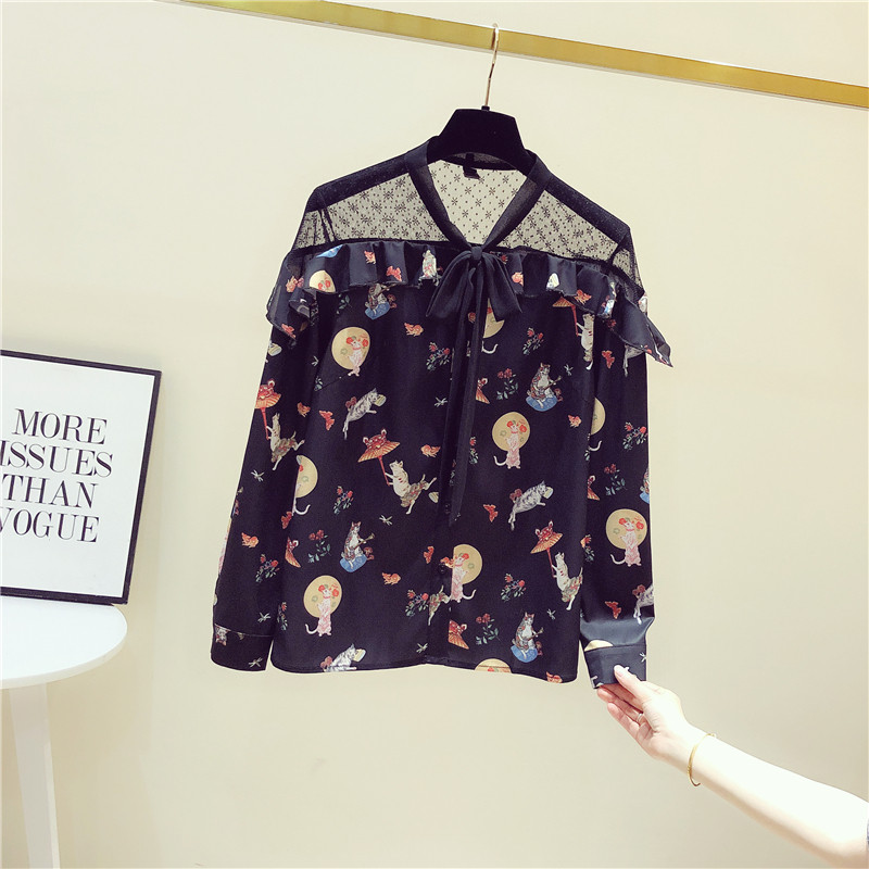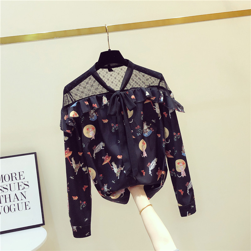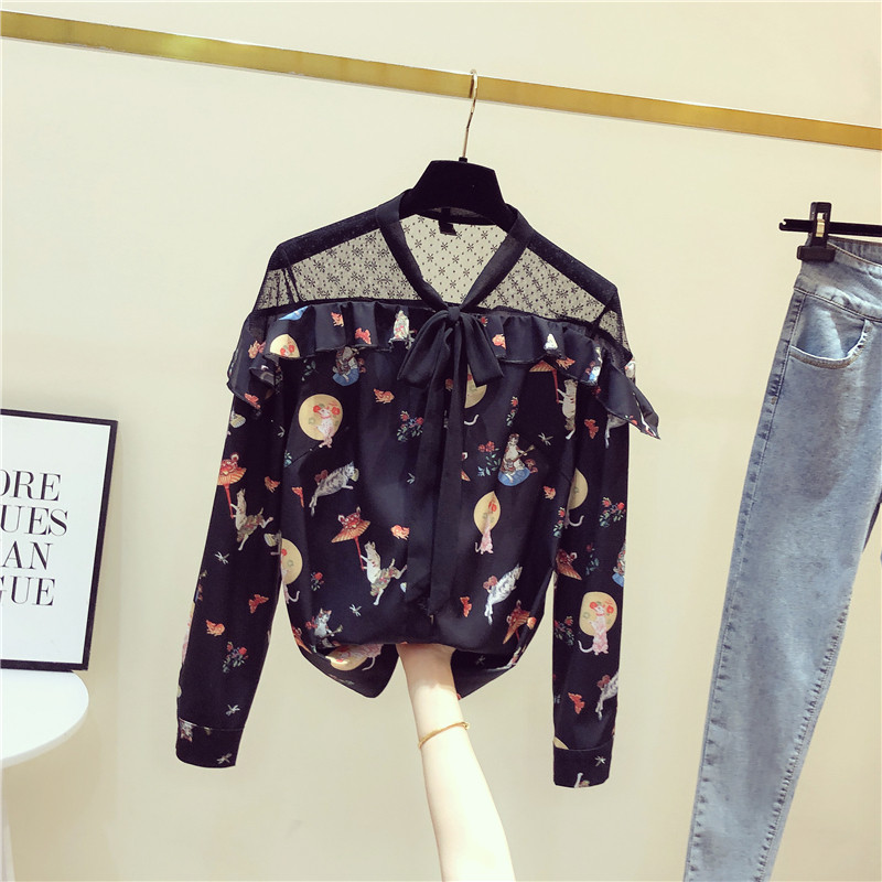 South Korea 2020 spring dress new Korean version printed shirt woman long sleeve port wind mesh yarn thin jacket woman fashion foreign pie