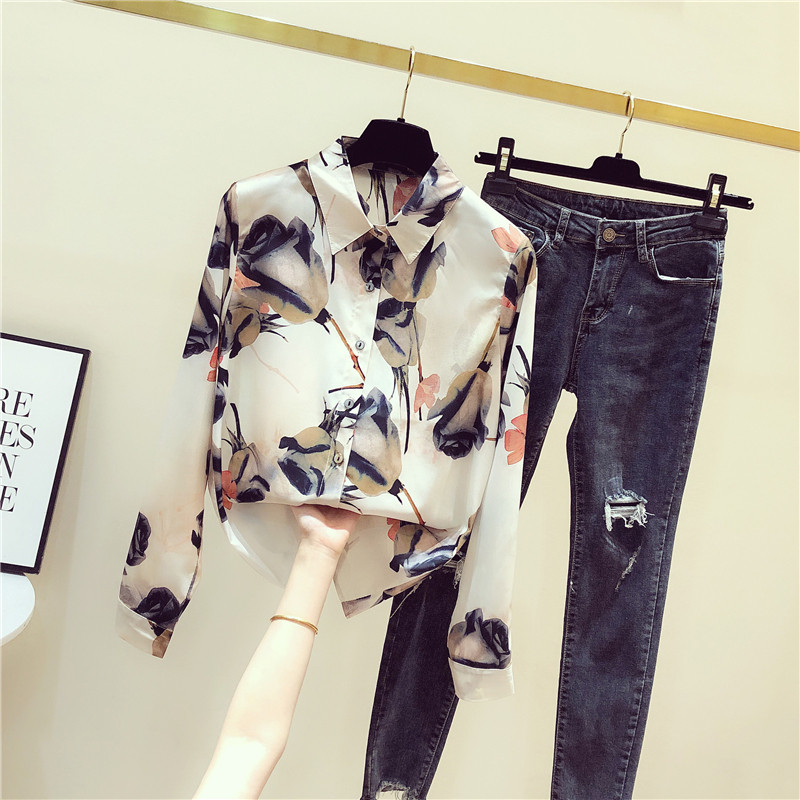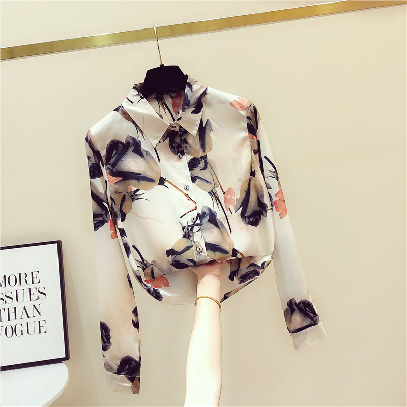 South Korea's Spring and Autumn new retro design sensation Little crowdprinting Snow spinning undershirt women's fashion Nehitch Shirt Tide