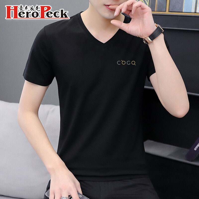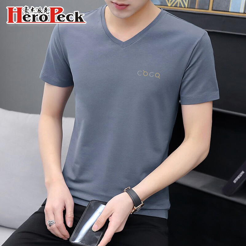 Modale short sleeve T-shirt men's clothing V neckline trendy clothes printed summertime undershirt ice-jersey half-sleeve summer