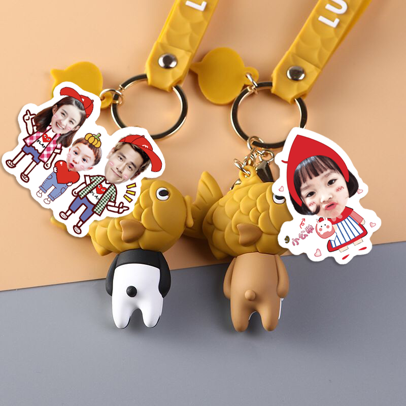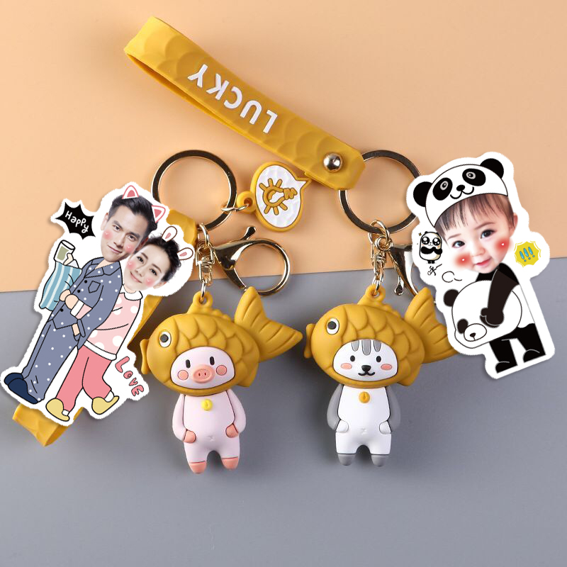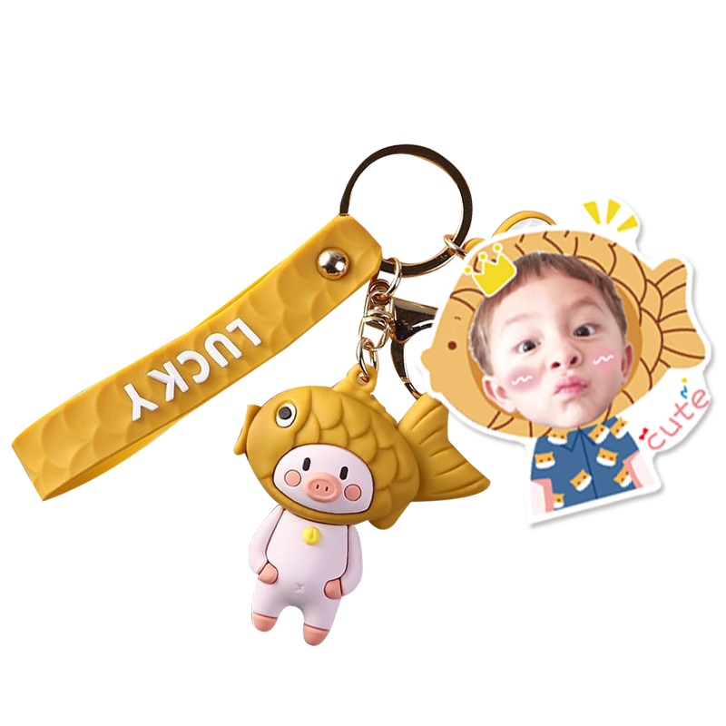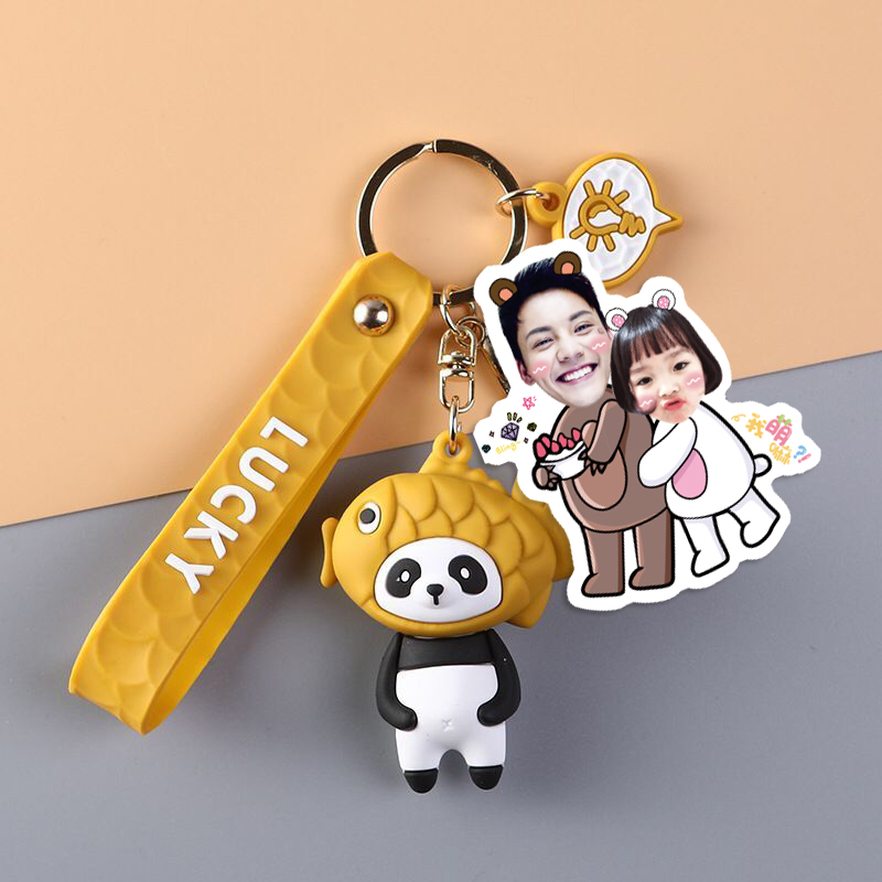 Pig fork fish roast (Cartoon keychain) Keychain accessories Panda fork fish roast (Cartoon keychain) Cat fork fish roast (Cartoon keychain) Single double-sided photo lobster buckle keychain ring Double