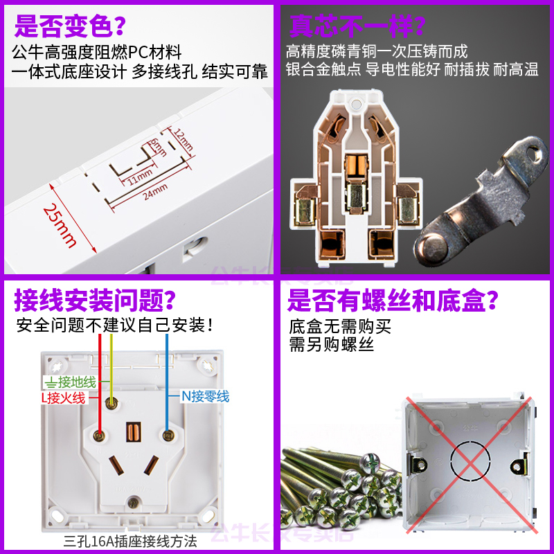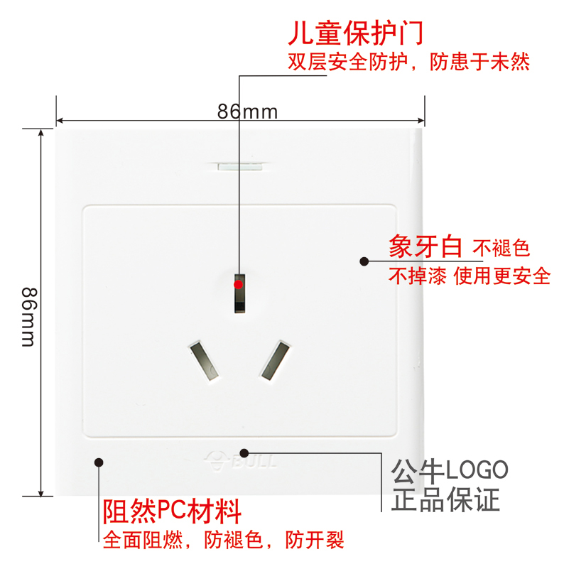 Bull surface-mounted switch socket three-hole socket 16A air conditioning 86 type high-power open line box 3-hole power panel