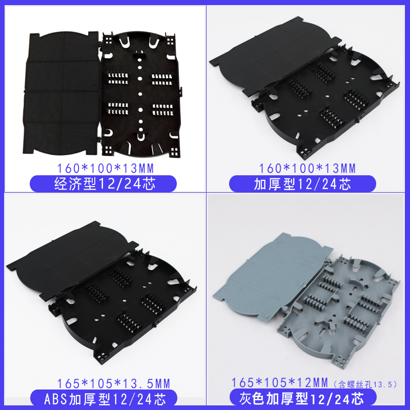Fiber optic splice tray ABS thickened optical cable splice tray 12 cores 24 cores large optical fiber splice tray 4 cores 6 cores 8 cores small optical cable terminal box splicing package ABS PPR black gray main shell wiring box