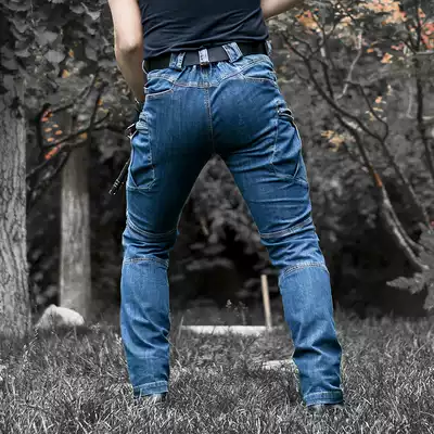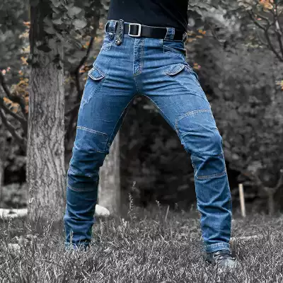 Autumn and winter outdoor multi-bag overalls outdoor tactical jeans men's slim stretch large size wear-resistant training pants