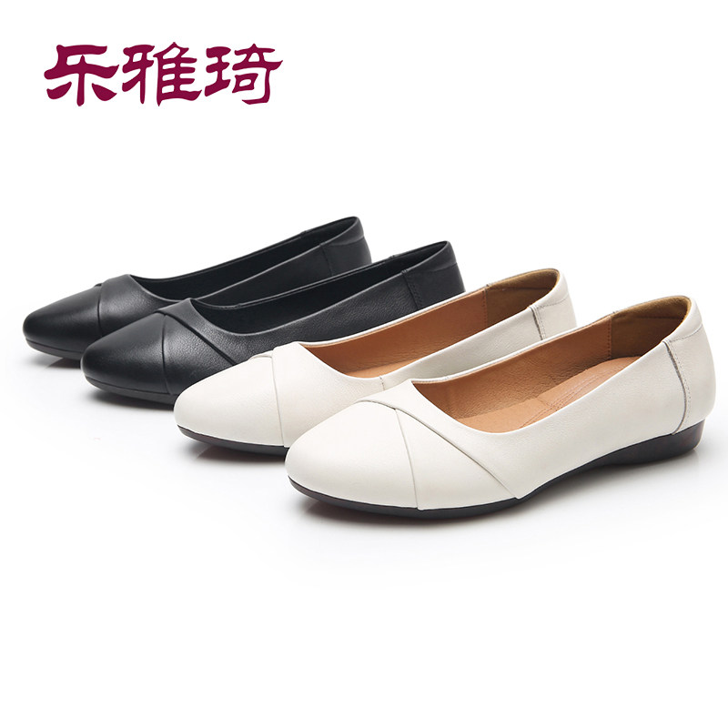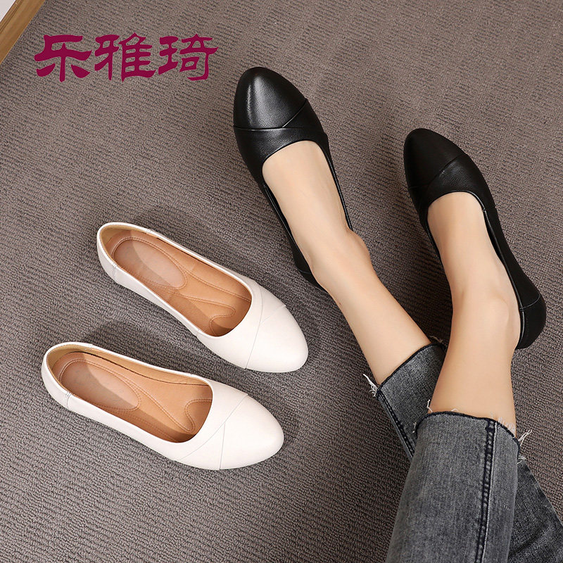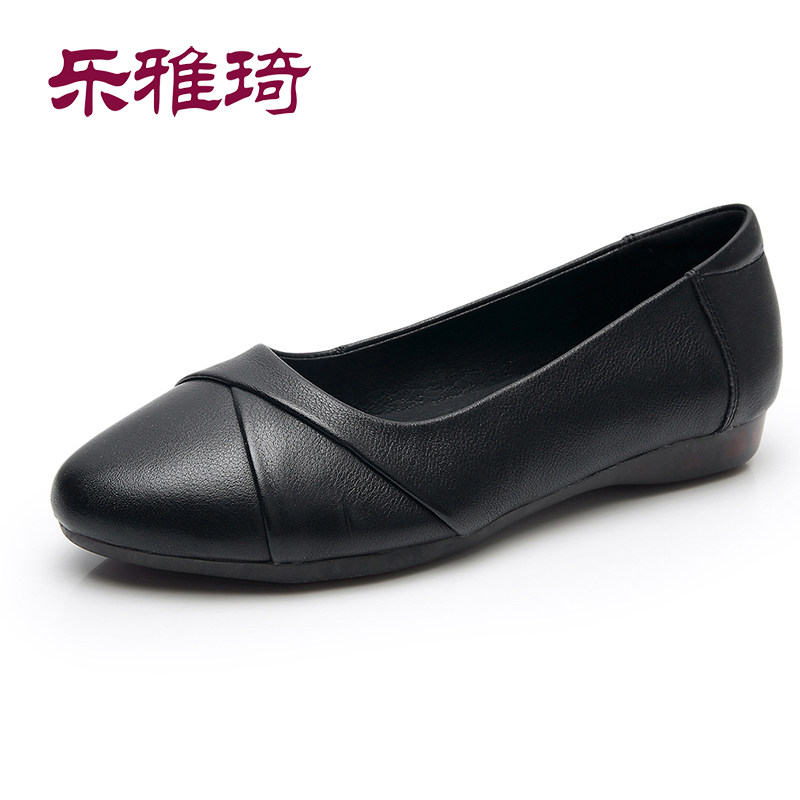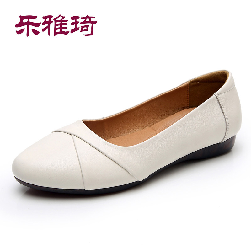 Large size leather soft bottom mother shoes spring and autumn shallow mouth single shoes middle-aged women's flat shoes breathable casual fashion non-slip