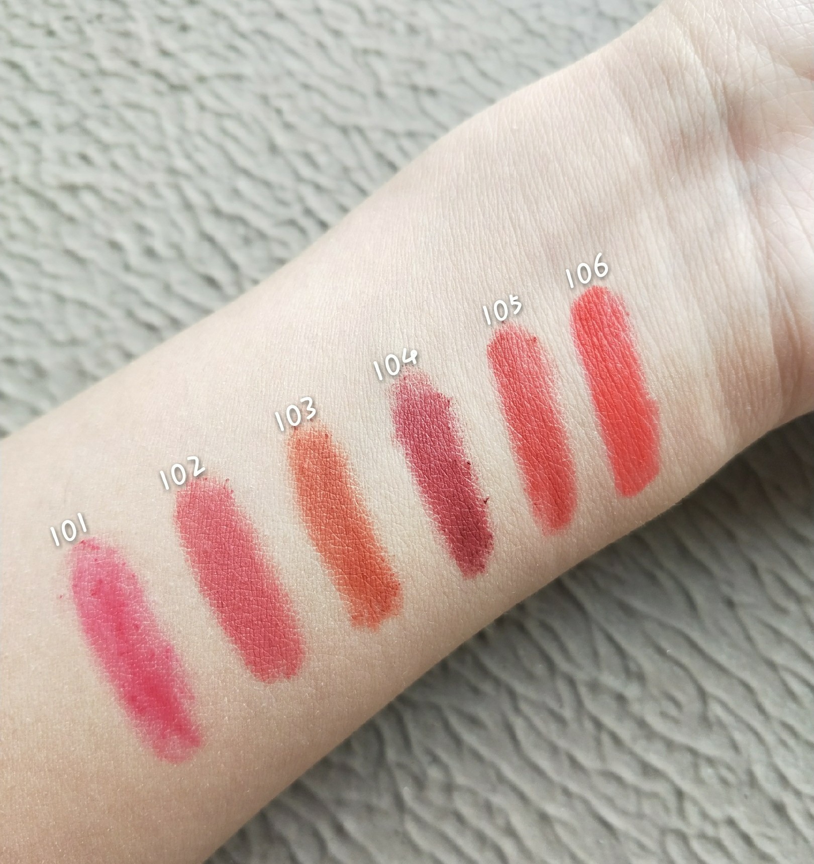 101 Cherry Enchantment 102 Rose Bean Sand (Hot Sell Color) 103 Sunset Avenue 104 Night Color Low Surge (Hot Sell Color) 105 Little Chili (Hot Selling Color) 106 Passion
