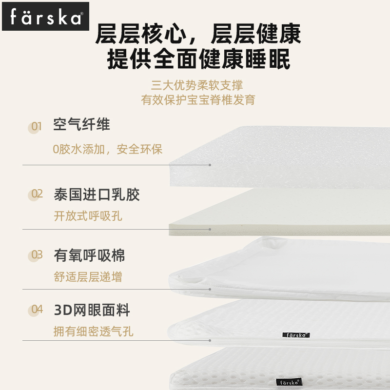 Japan Farka full wash 3D summer upholstered hard mat children's latex mattress breathable foldable crib mat