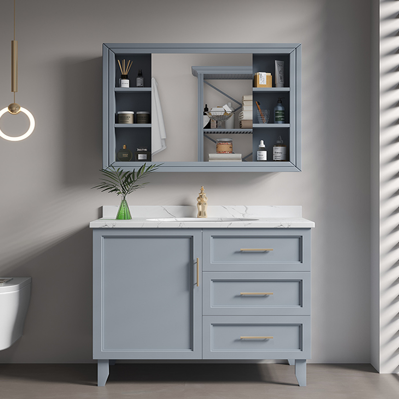 Rain Bamboo Forest Light Luxurious Rock Board Bath Cabinet Nordic Minimalist Modern Makeup Room Wash-Wash-Face-To-Deck Basin Combined Mirror Cabinet