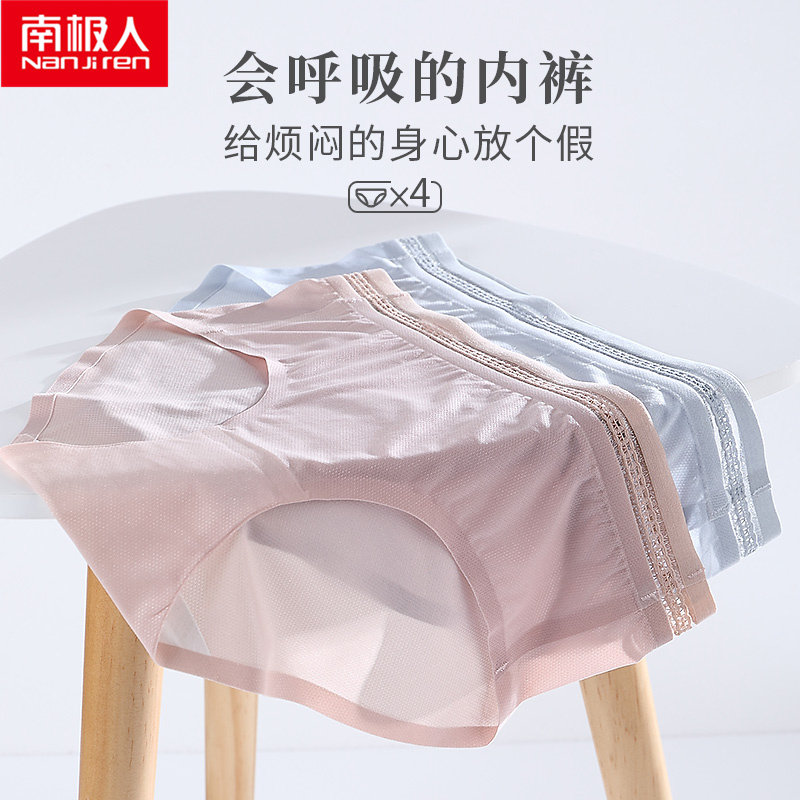 Antarctic underwear women's pure cotton crotch sexy lace women's underwear mid-waist ice silk seamless large size breathable briefs