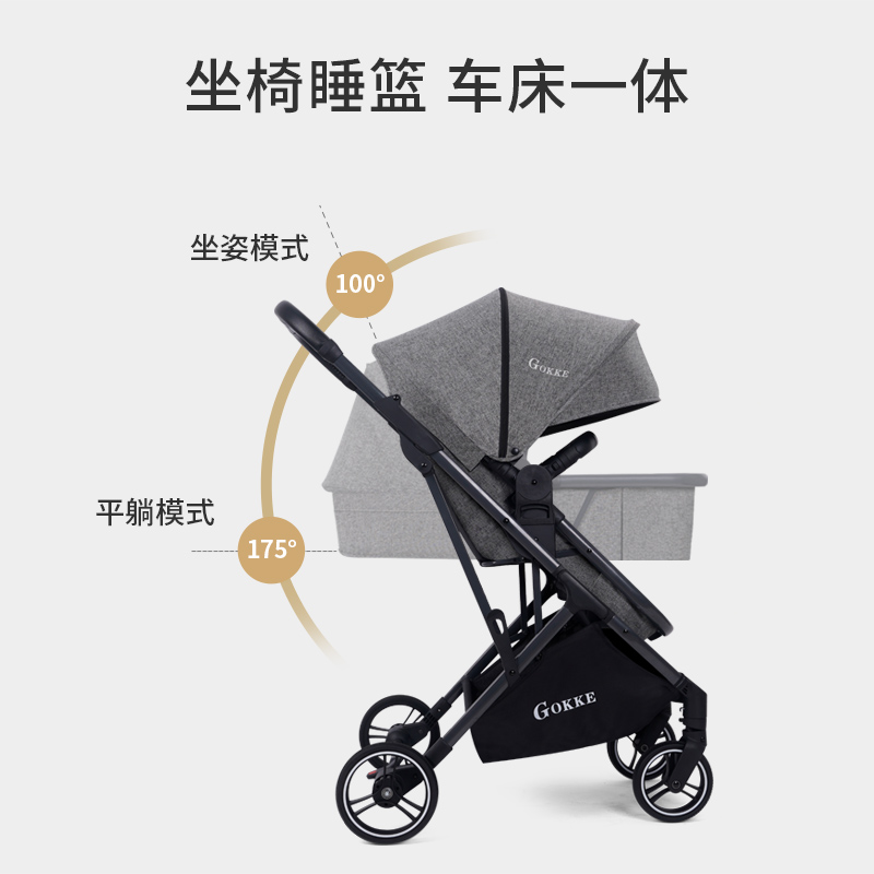 GOKKE German Two-way Baby Stroller High Landscape Stroller Portable Fold can sit and sleep basket baby stroller